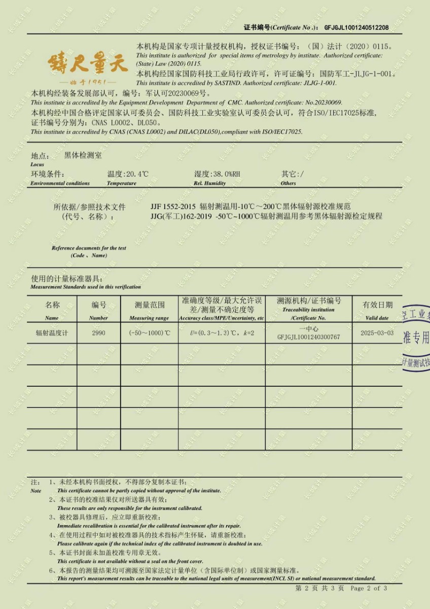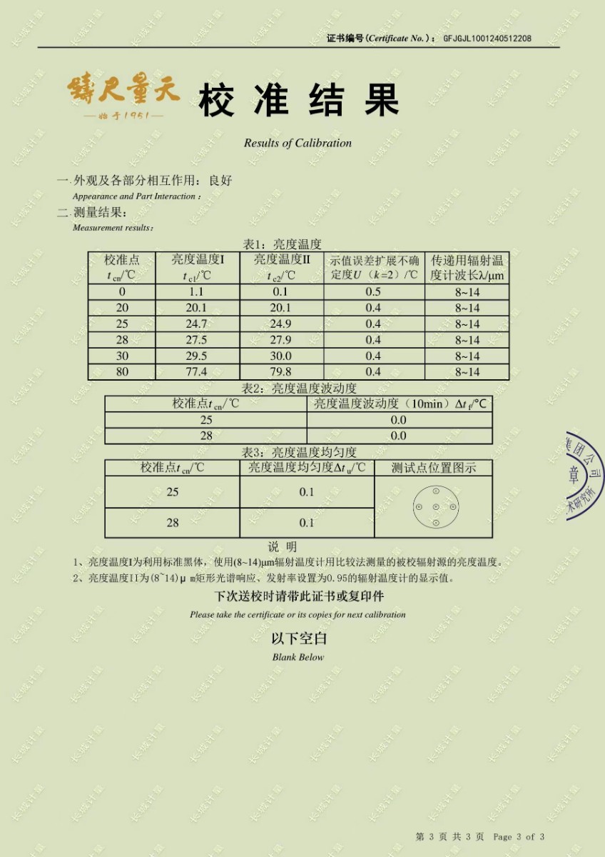 面源黑體爐校準(zhǔn)證書 2024-5-31 本文被閱讀 7413 次
