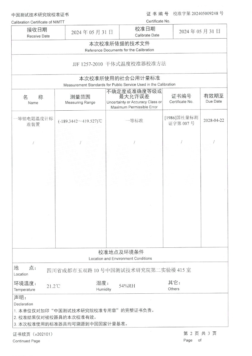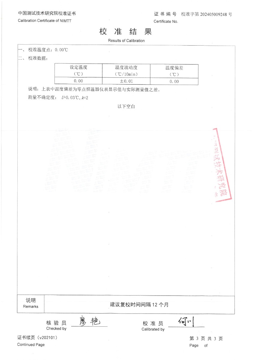 零點恒溫器(0℃±0.1℃)校準證書 2024-6-5 本文被閱讀 7172 次