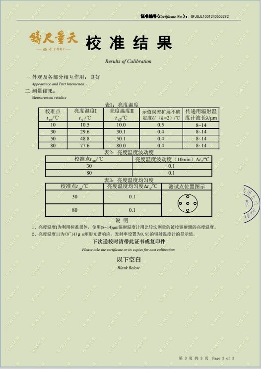 面源黑體輻射源(0-80℃)304所校準(zhǔn)證書(shū)