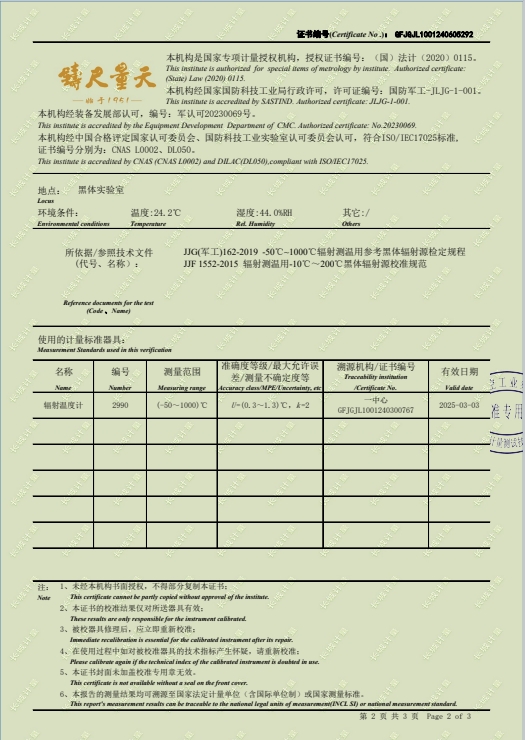 面源黑體輻射源(0-80℃)304所校準(zhǔn)證書(shū) 2024-6-18 本文被閱讀 9659 次