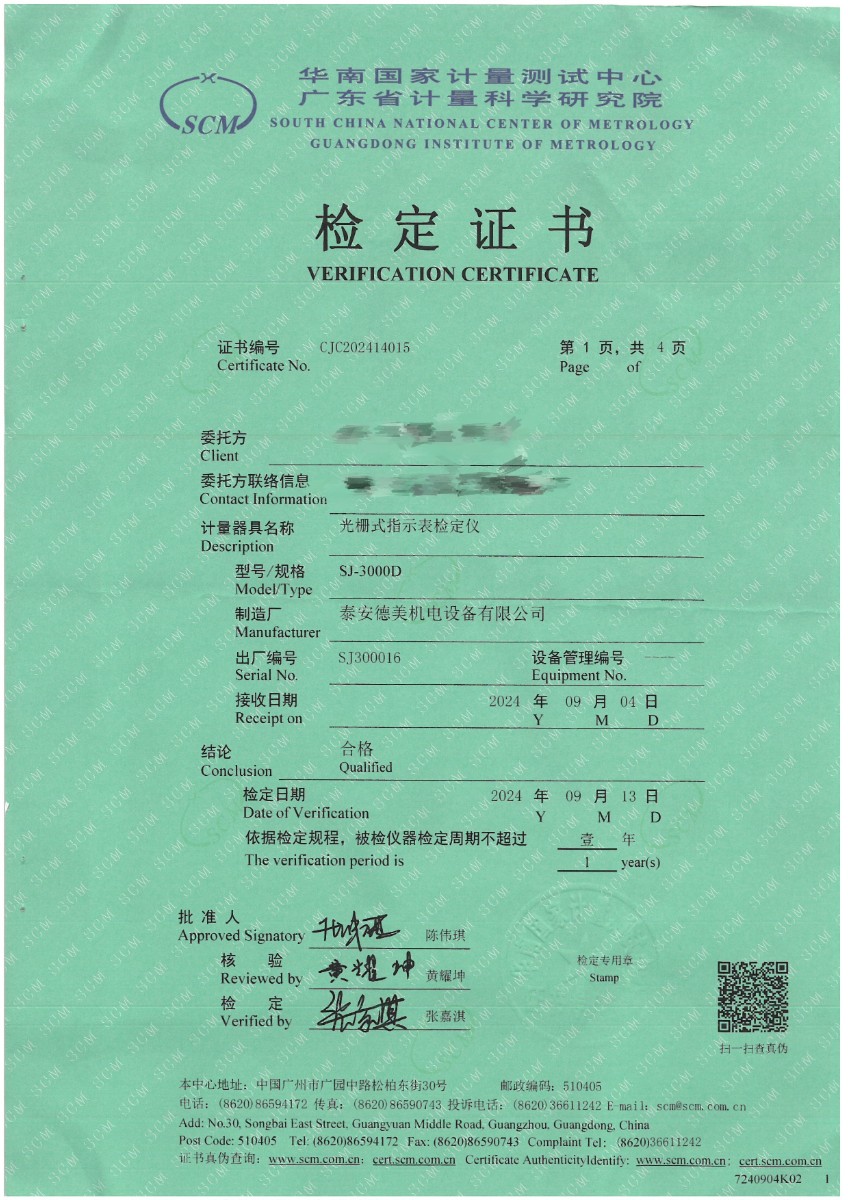 光柵式指示表檢定儀檢定證書 2024-9-20 本文被閱讀 7046 次