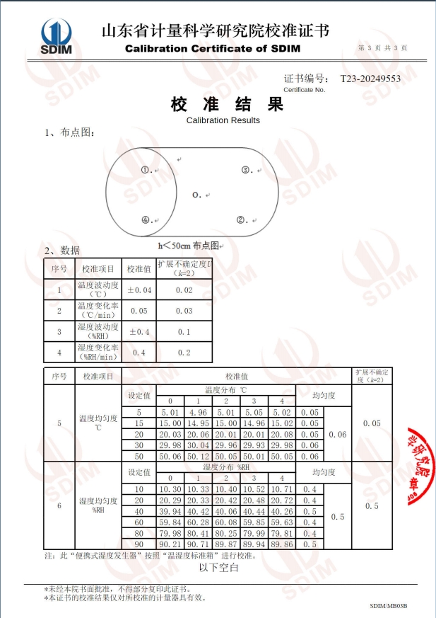 便攜式濕度發(fā)生器(5~50℃)校準(zhǔn)證書
