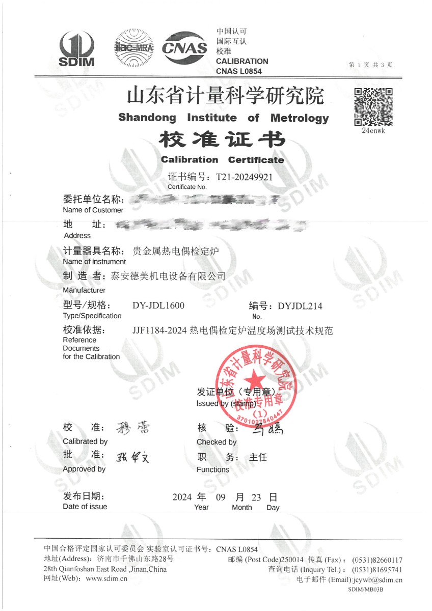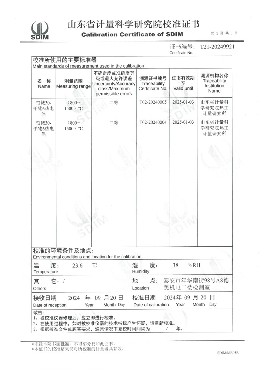 | 上一條:貴金屬熱電偶檢定爐(300~1000℃)校準證書 | 下一條:DY-HT2M-C高溫面源黑體爐(100mm) |