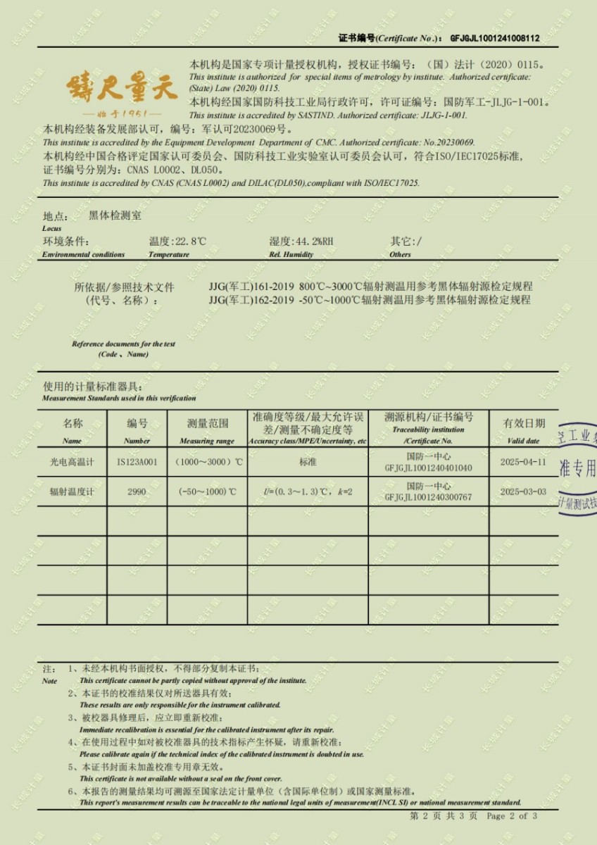 高溫黑體爐(700-1600℃)校準(zhǔn)證書 2024-11-6 本文被閱讀 7117 次