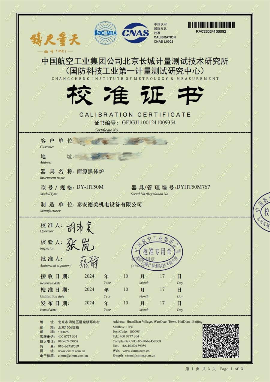 | 上一條:高溫黑體爐(700-1600℃)校準(zhǔn)證書 | 下一條:DY-HT2M-C高溫面源黑體爐(100mm) |