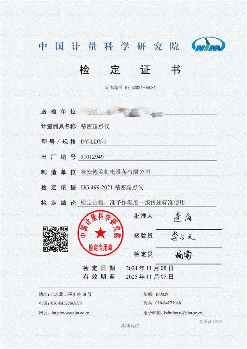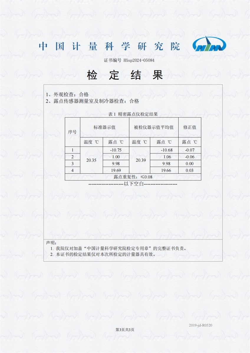 冷鏡式露點(diǎn)儀檢定證書 2024-11-21 本文被閱讀 7446 次