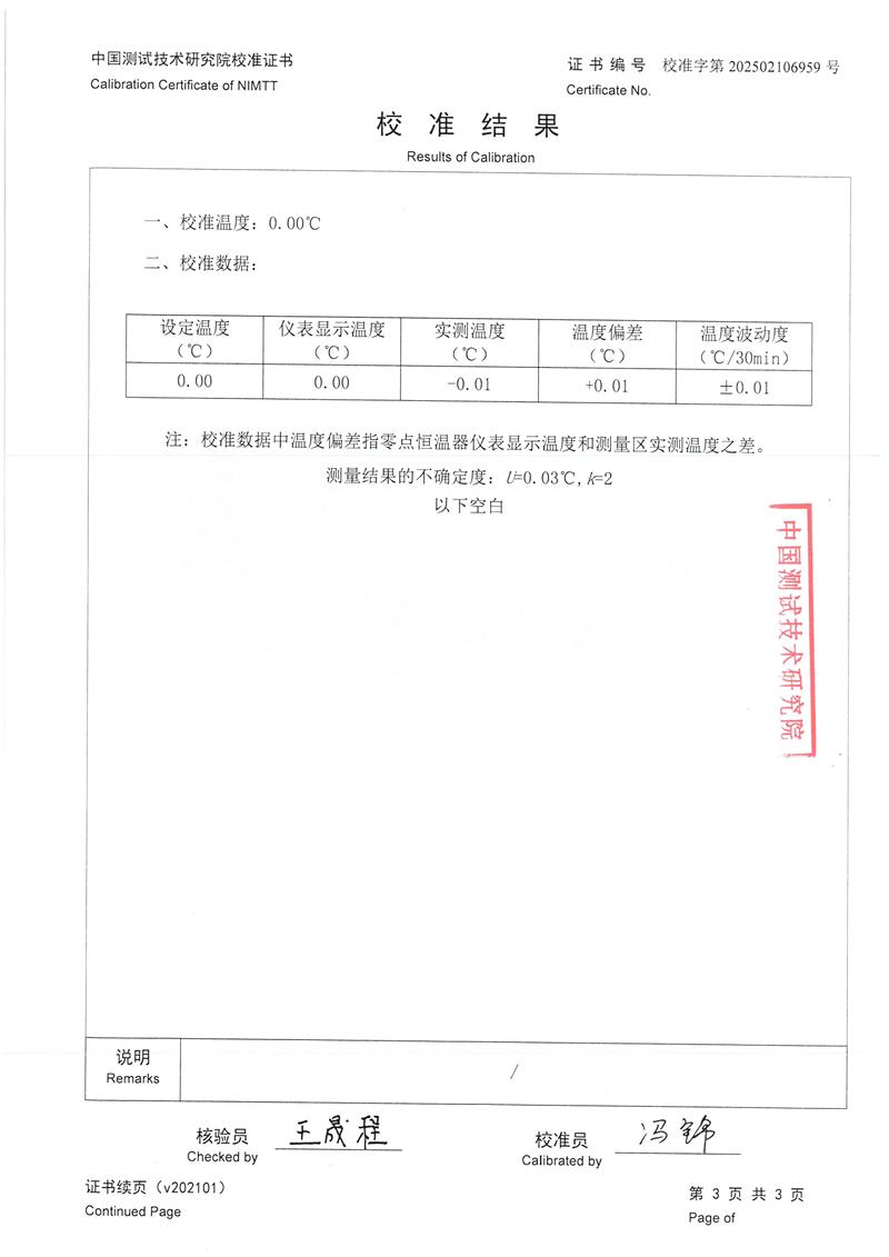 零點恒溫器校準證書 2025-3-12 本文被閱讀 3964 次