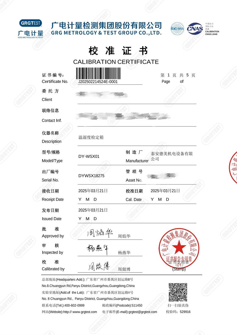 | 上一條:溫濕度檢定箱18277(-5~65℃)校準(zhǔn)證書 | 下一條:DY-HT2M-C高溫面源黑體爐(100mm) |