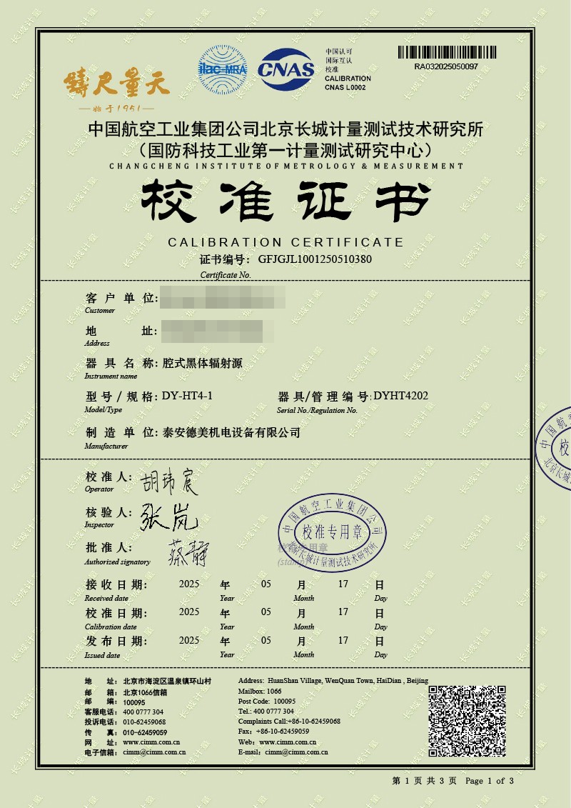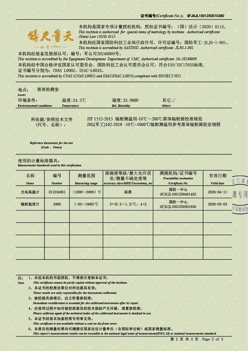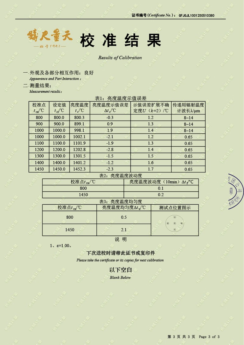 腔式黑體輻射源(800-1450℃)校準(zhǔn)證書 2025-5-28 本文被閱讀 4065 次