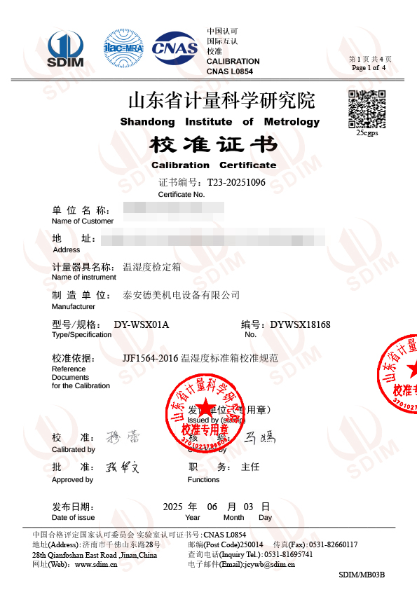 溫濕度檢定箱(-20-65℃)校準(zhǔn)證書 2025-6-5 本文被閱讀 4413 次