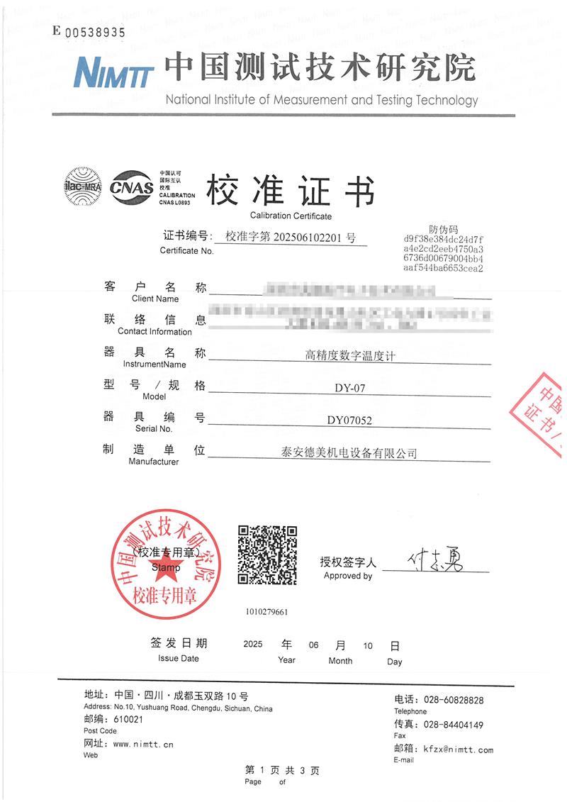數(shù)字溫度計(-20~150℃)校準(zhǔn)證書 2025-6-13 本文被閱讀 4548 次