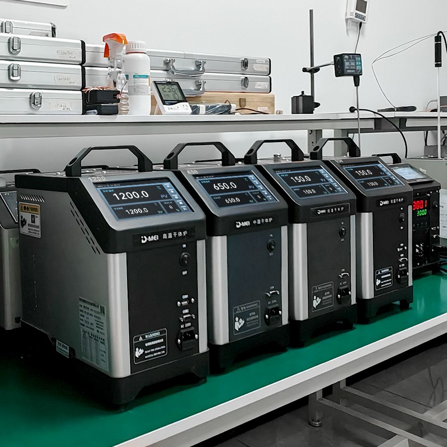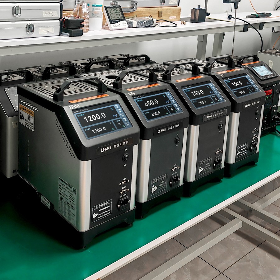 干體爐能夠提供一個(gè)穩(wěn) 定的、均勻的、準(zhǔn)確的溫度環(huán)境(溫場),提供了類似于恒溫槽(液浴槽)的性能,但是干體爐卻攜帶方便,不需要放置液體。干體爐到達(dá)預(yù)定溫度點(diǎn)并且溫度穩(wěn) 定的時(shí)間比恒溫槽快5到10倍,這樣可以大大節(jié)省校準(zhǔn)人員的時(shí)間,提高溫度檢定速度。干體爐的便攜性使其能夠到現(xiàn)場進(jìn)行校準(zhǔn)工作,從而解決了恒溫槽在運(yùn)輸移動上的困難。 通過干體爐可以方便地校準(zhǔn)溫度傳感器、水銀溫度計(jì)、膨脹式溫度計(jì)、熱電偶、熱電阻、等溫度傳感器。
