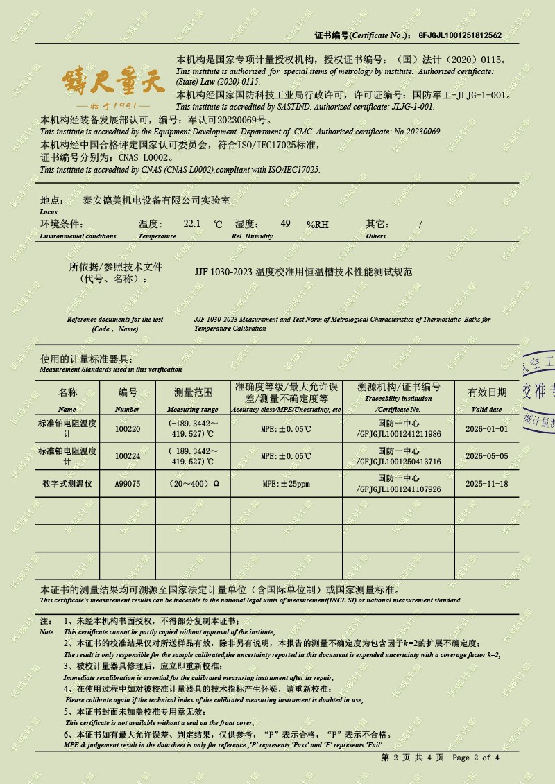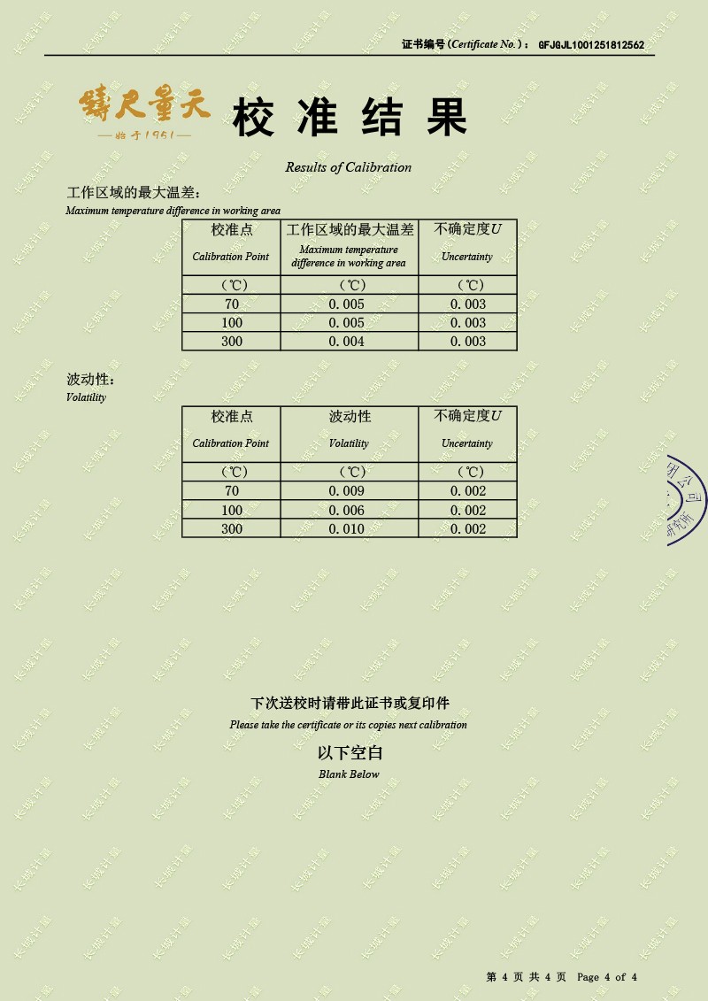 高精度恒溫油槽(70-300℃)校準(zhǔn)證書 2025-6-25 本文被閱讀 4290 次