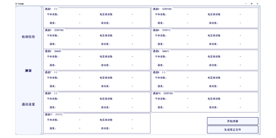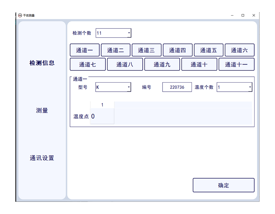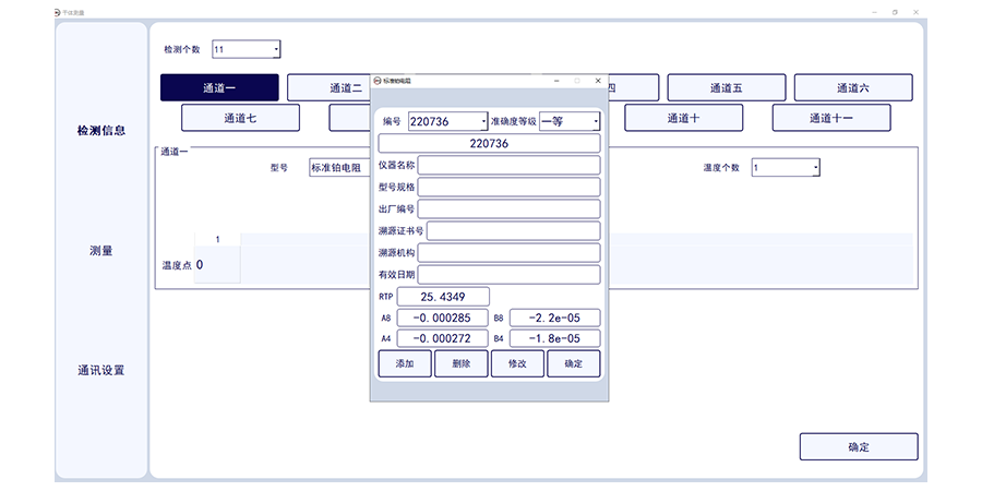 此套軟件可讀取1-11路標(biāo)準(zhǔn)通道的數(shù)字萬用表的電壓數(shù)值,標(biāo)準(zhǔn)溫度值,并一鍵轉(zhuǎn)換溫度值,并實(shí)現(xiàn)溫度波動度計算,可確定干體溫度校驗(yàn)爐與標(biāo)準(zhǔn)器溫度的差值??梢绘I生成證書數(shù)據(jù)。