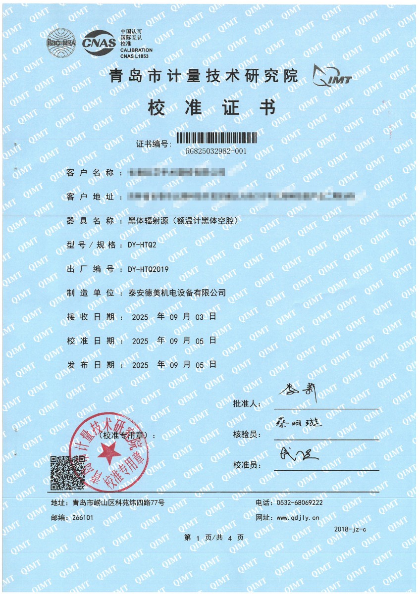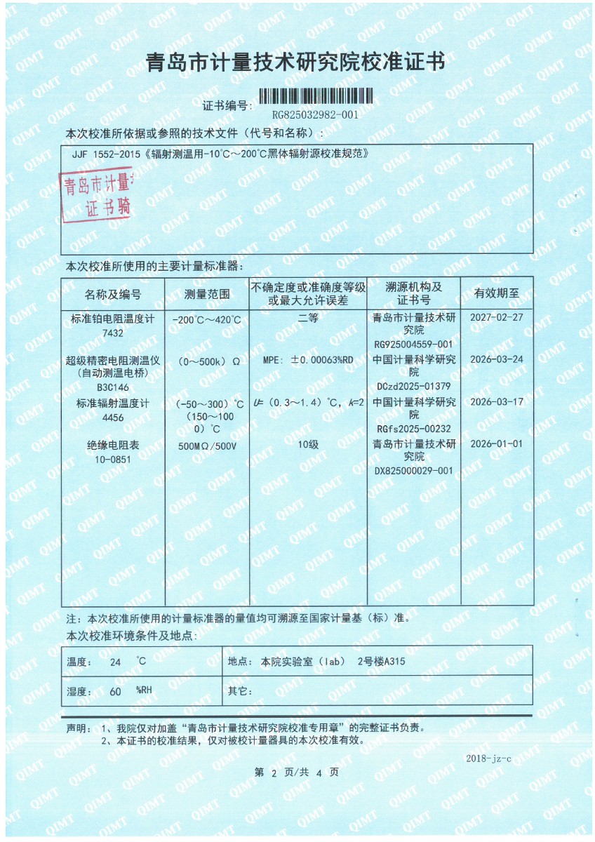 額溫計黑體空腔-校準(zhǔn)證書 2025-9-23 本文被閱讀 2953 次