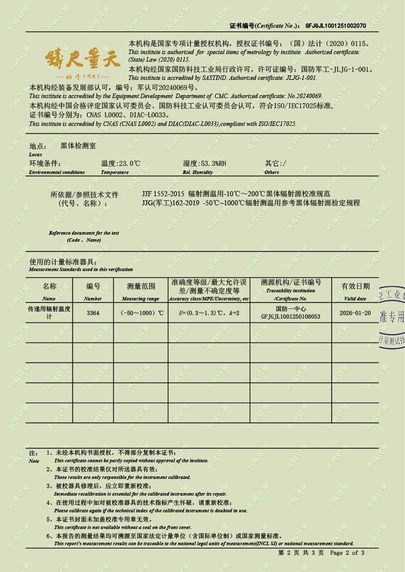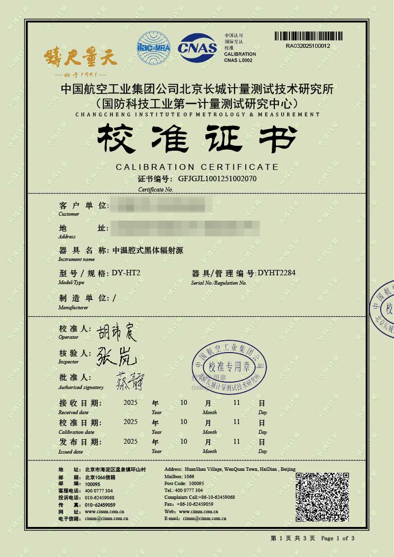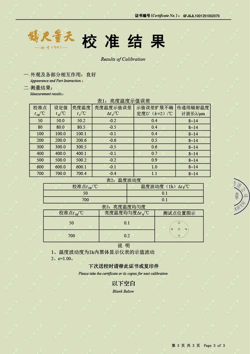 中溫腔式黑體輻射源(50-700℃)校準(zhǔn)證書 2025-10-30 本文被閱讀 1653 次