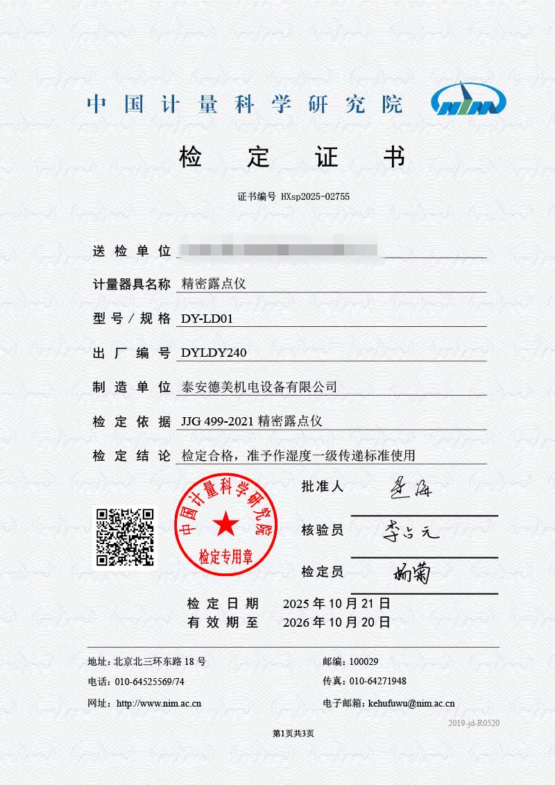 露點(diǎn)儀檢定證書 2025-10-30 本文被閱讀 1742 次