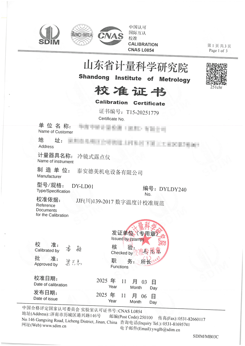 冷鏡式露點(diǎn)儀校準(zhǔn)證書 2025-11-7 本文被閱讀 1874 次