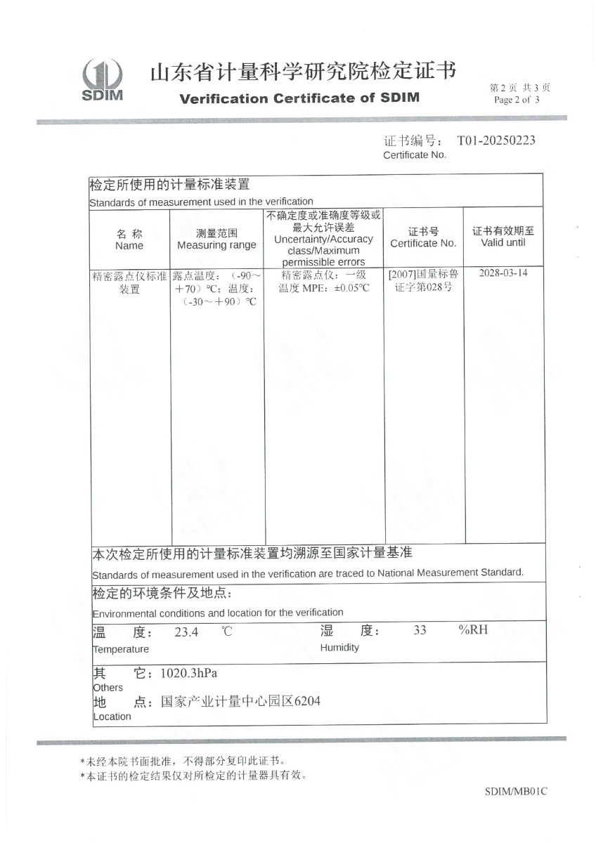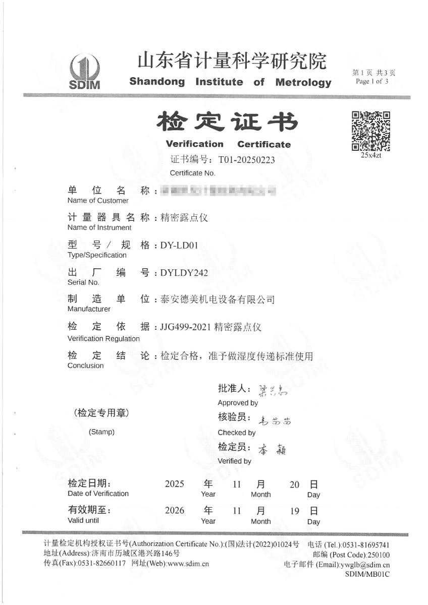 露點儀檢定、校準證書 2025-12-4 本文被閱讀 1696 次