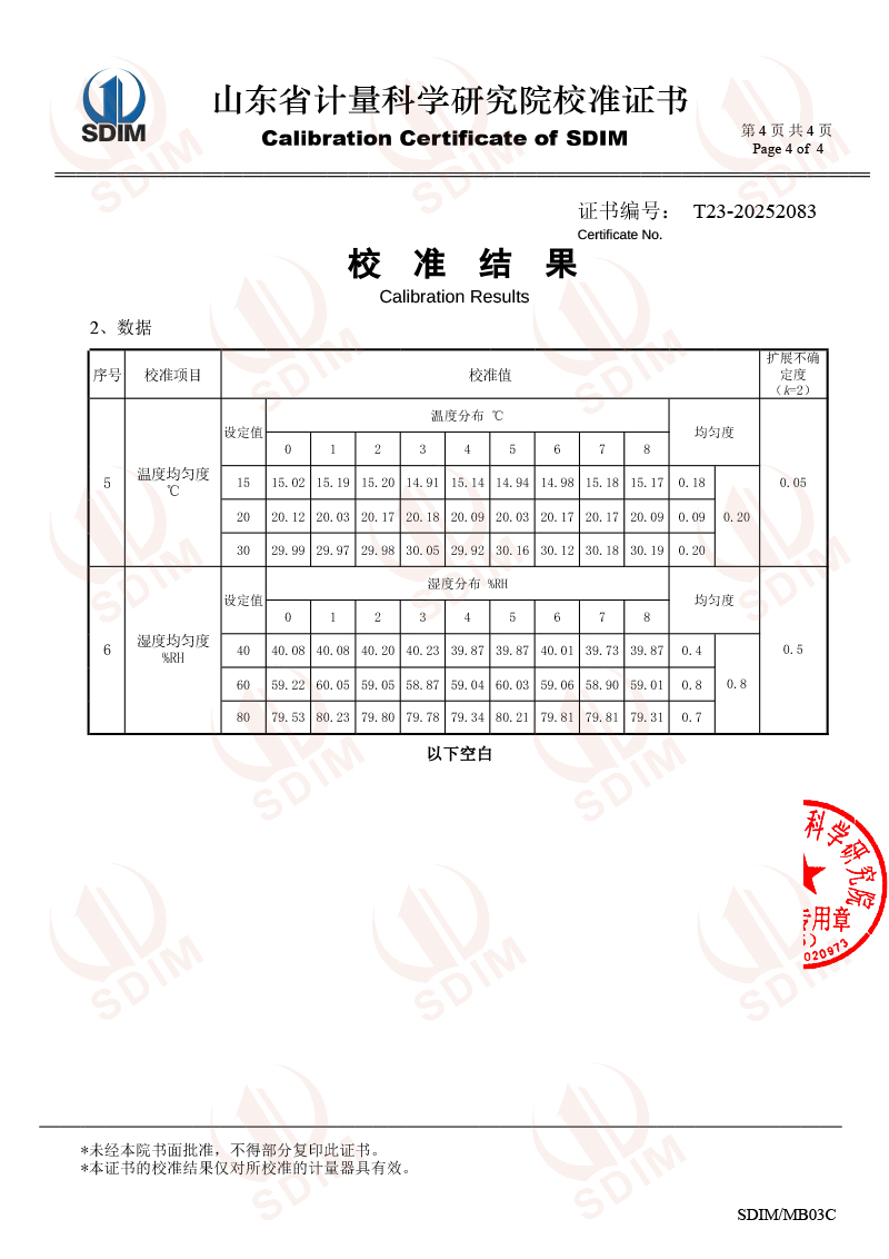 溫濕度檢定箱校準(zhǔn)證書(shū)
