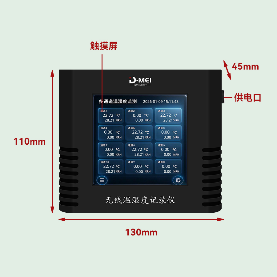 無線溫濕度采集系統(tǒng)是一款高精度、多通道、易部署的環(huán)境監(jiān)測(cè)解決方案,由無線溫濕度傳感器和無線接收器兩部分組成。系統(tǒng)采用瑞士Sensirion原裝溫濕度探頭,結(jié)合2.4G無線通信技術(shù)與工業(yè)級(jí)顯示模塊,支持多只傳感器同步監(jiān)測(cè),適用于實(shí)驗(yàn)室、倉儲(chǔ)、農(nóng)業(yè)大棚、機(jī)房等多場(chǎng)景的溫濕度實(shí)時(shí)監(jiān)控與數(shù)據(jù)追溯。