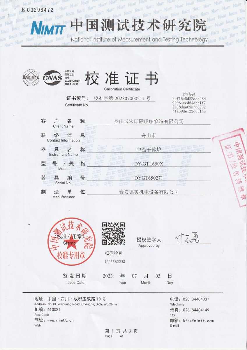 舟山長宏國際船舶修造有限公司-中溫干體爐 2023-7-13 本文被閱讀 13098 次