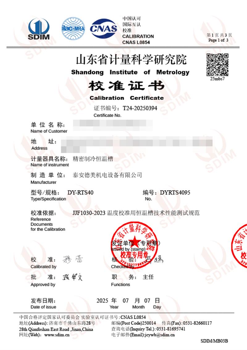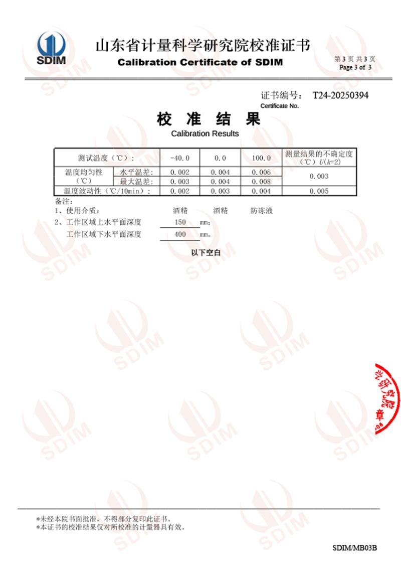 制冷恒溫槽(-40-100℃)校準證書 2025-7-10 本文被閱讀 3879 次