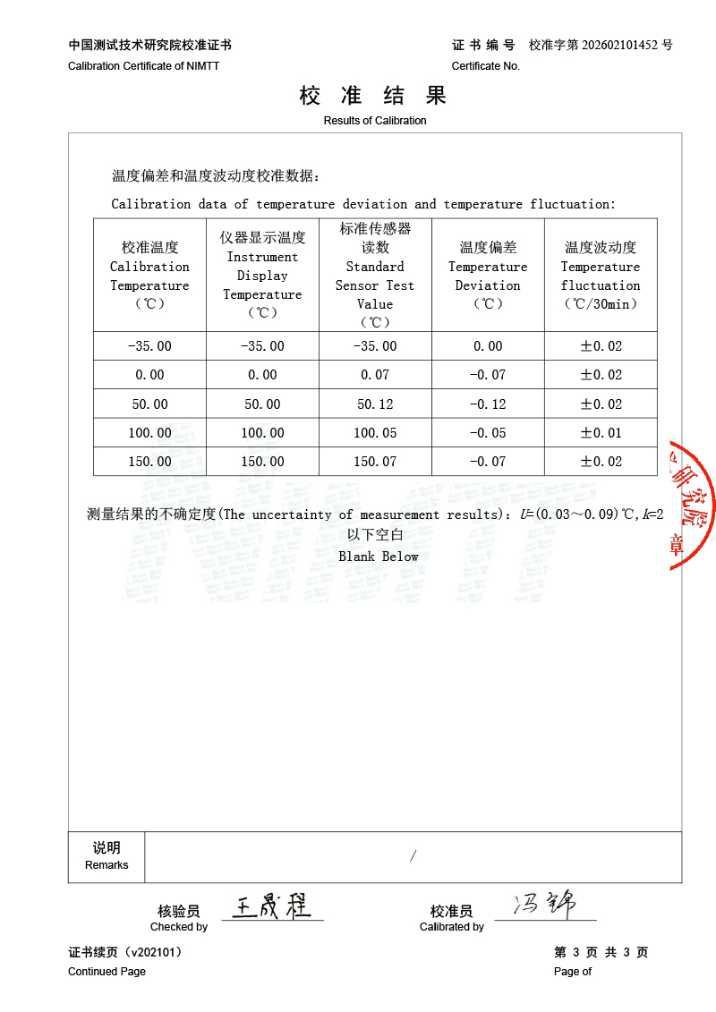 低溫干體-校準證書 2026-2-11 本文被閱讀 7 次