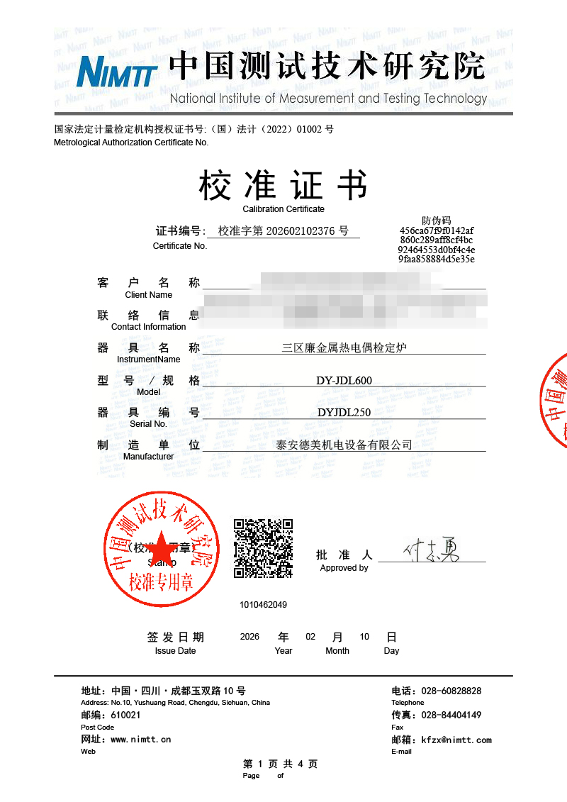三區(qū)廉金屬熱電偶檢定爐-校準證書 2026-2-11 本文被閱讀 7 次