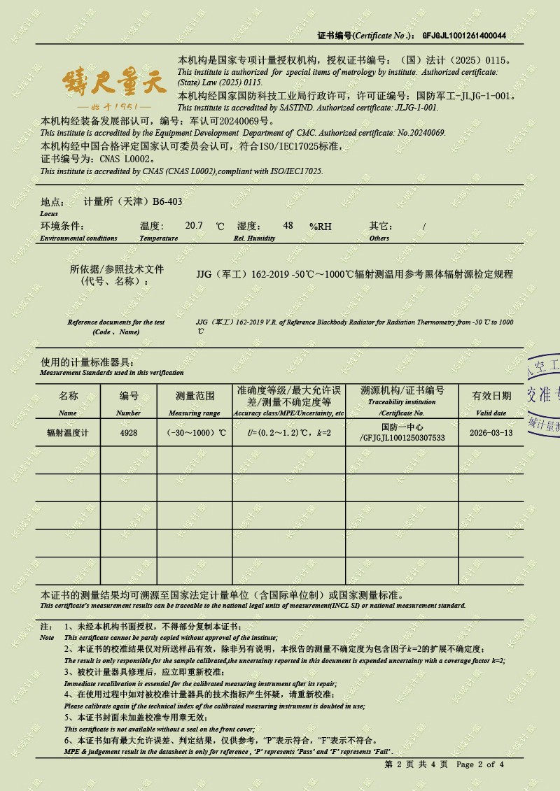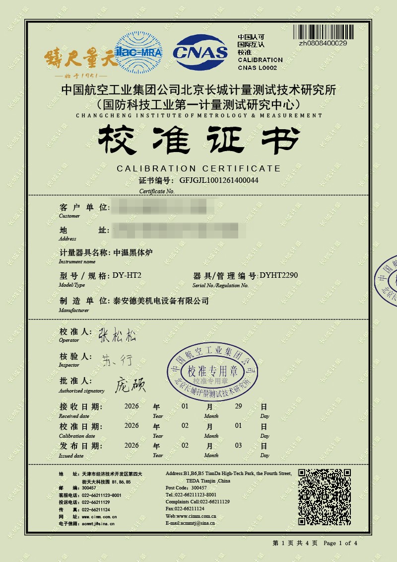 中溫黑體爐-校準(zhǔn)證書 2026-2-11 本文被閱讀 6 次