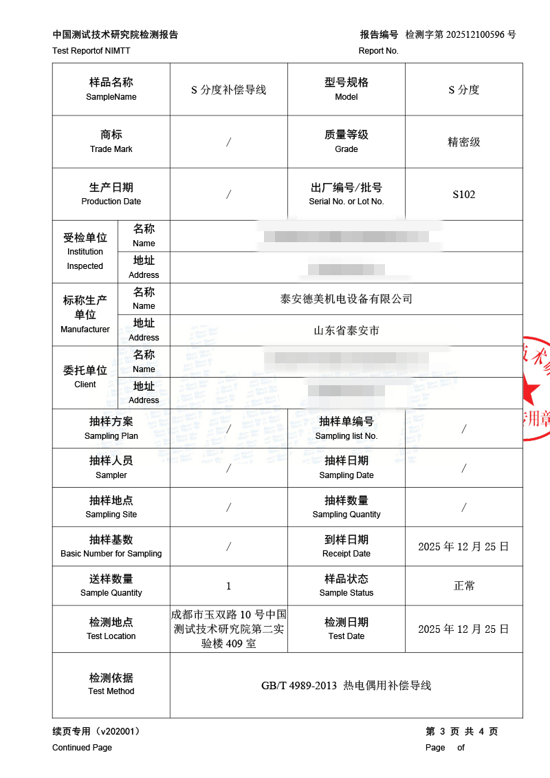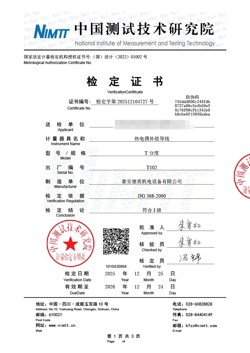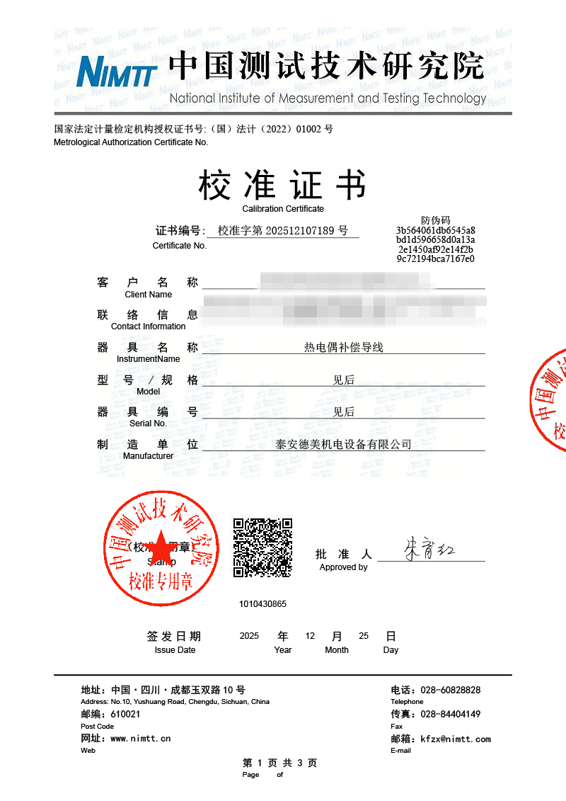 補償導(dǎo)線檢測、檢定、校準報告 2026-1-4 本文被閱讀 1141 次