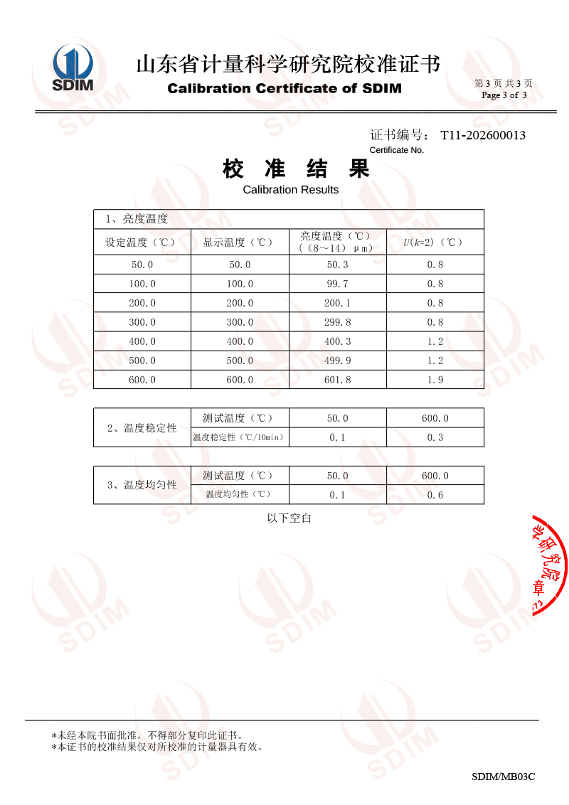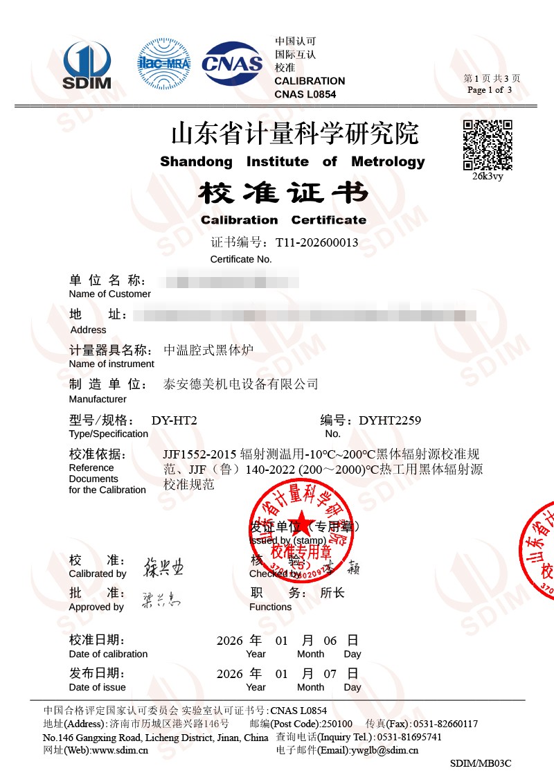 中溫腔式黑體校準(zhǔn)證書 2026-1-8 本文被閱讀 930 次