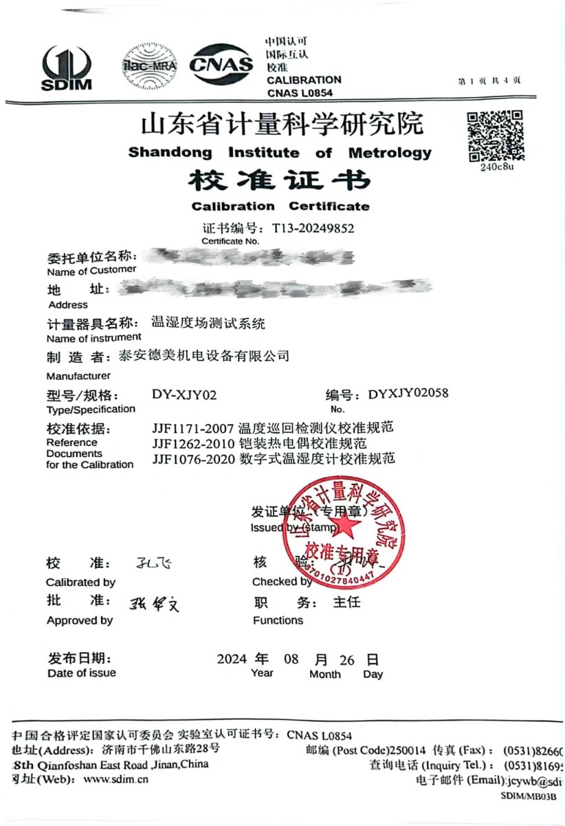 溫濕度場測試系統(tǒng)校準(zhǔn)證書 2024-8-29 本文被閱讀 7818 次