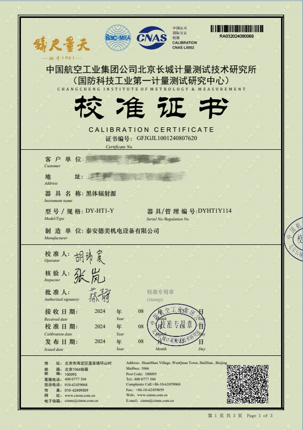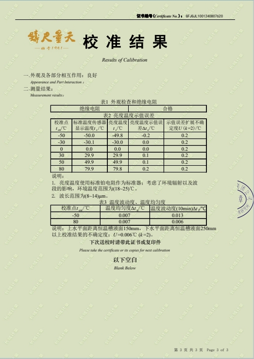 黑體輻射源-(-50~80(100℃))校準證書 2024-8-29 本文被閱讀 8208 次