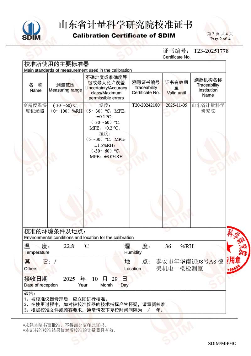溫濕度檢定箱(-5~65℃)校準證書 2025-11-3 本文被閱讀 1846 次