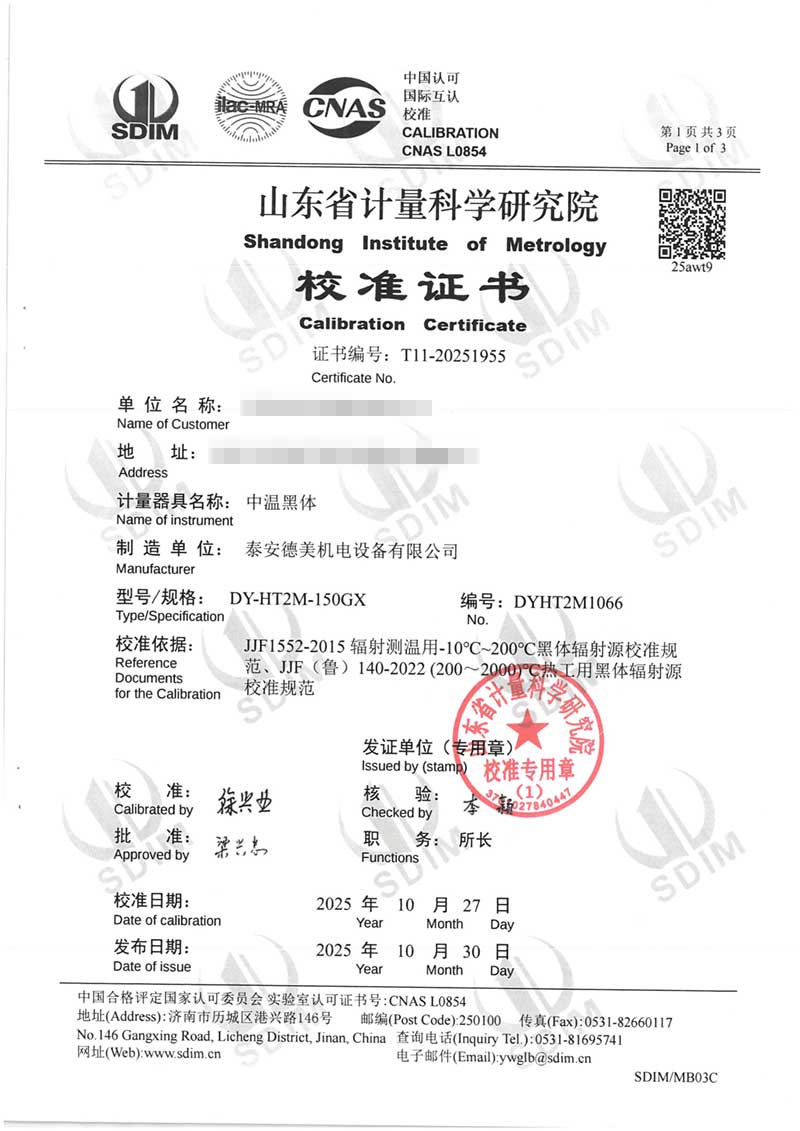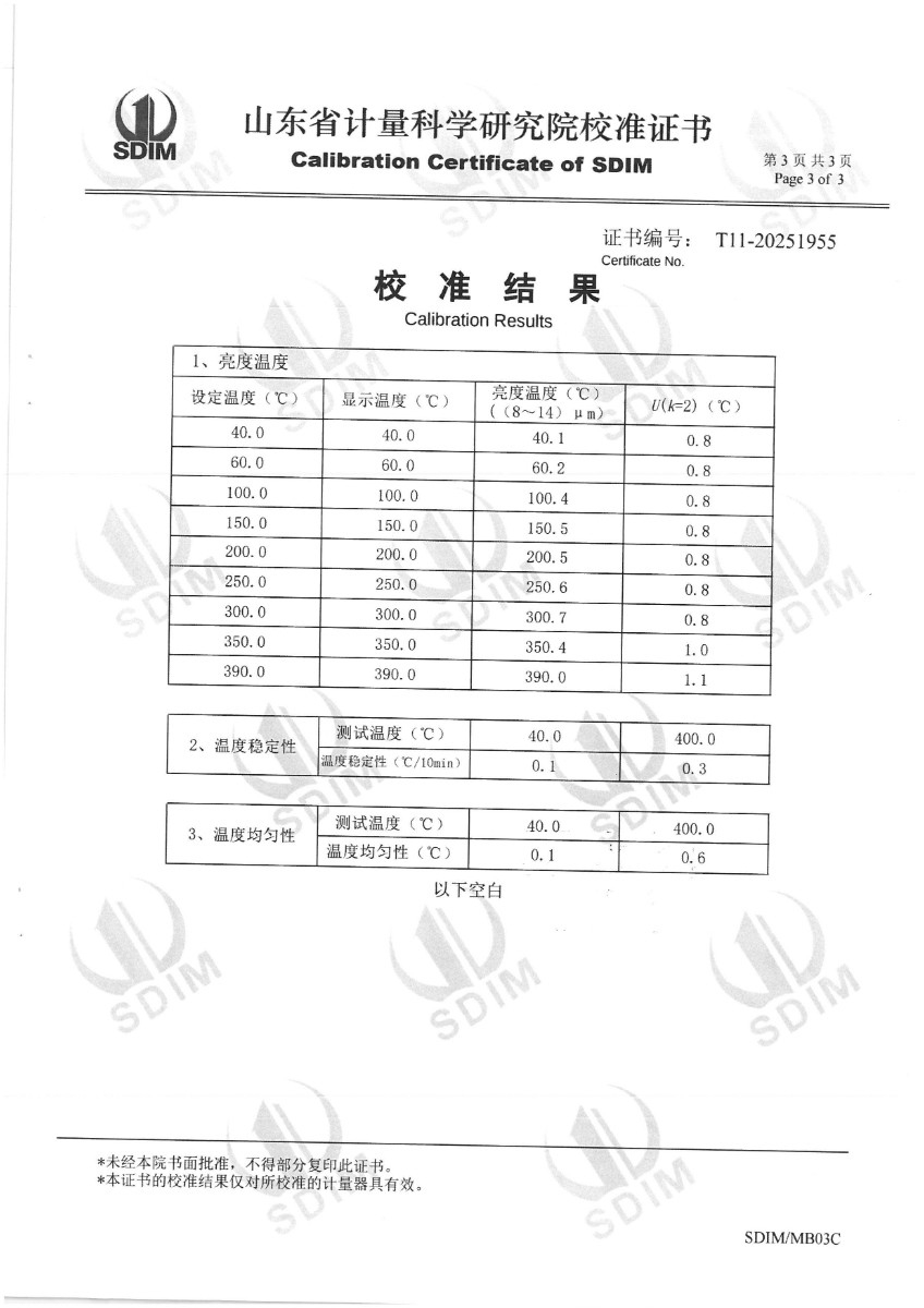| 上一條:溫濕度檢定箱(-5~65℃)校準(zhǔn)證書(shū) | 下一條:DY-HT2M-C高溫面源黑體爐(100mm) |