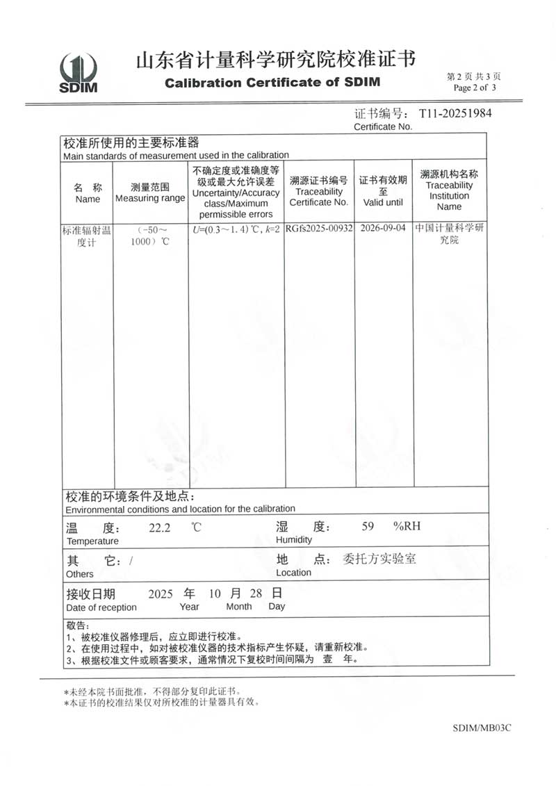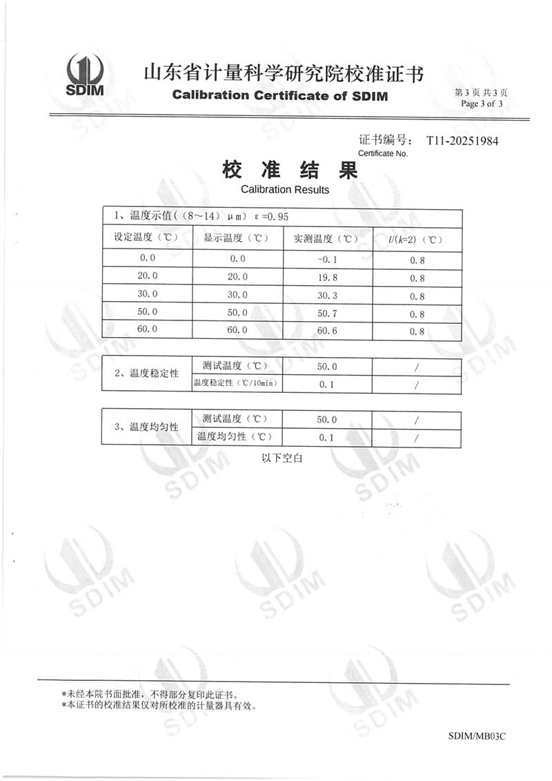 黑體輻射源(0-60°C)校準證書 2025-11-5 本文被閱讀 1597 次