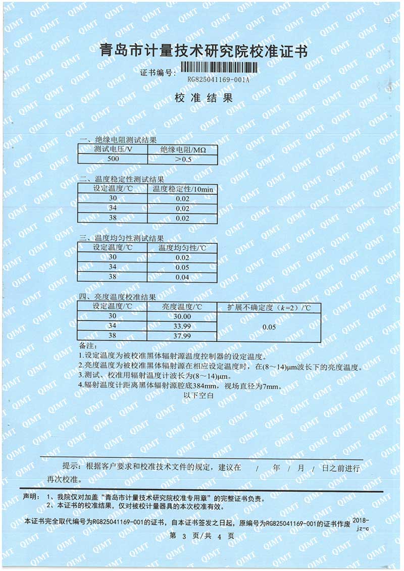 額溫計(jì)黑體空腔校準(zhǔn)證書 2025-11-5 本文被閱讀 1591 次