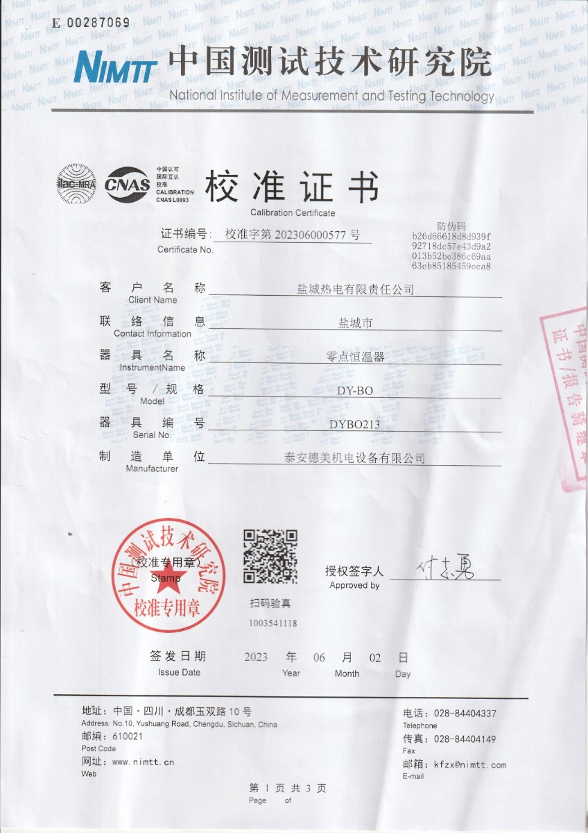 鹽城熱電有限責(zé)任公司-零點(diǎn)恒溫器 2023-6-9 本文被閱讀 18963 次