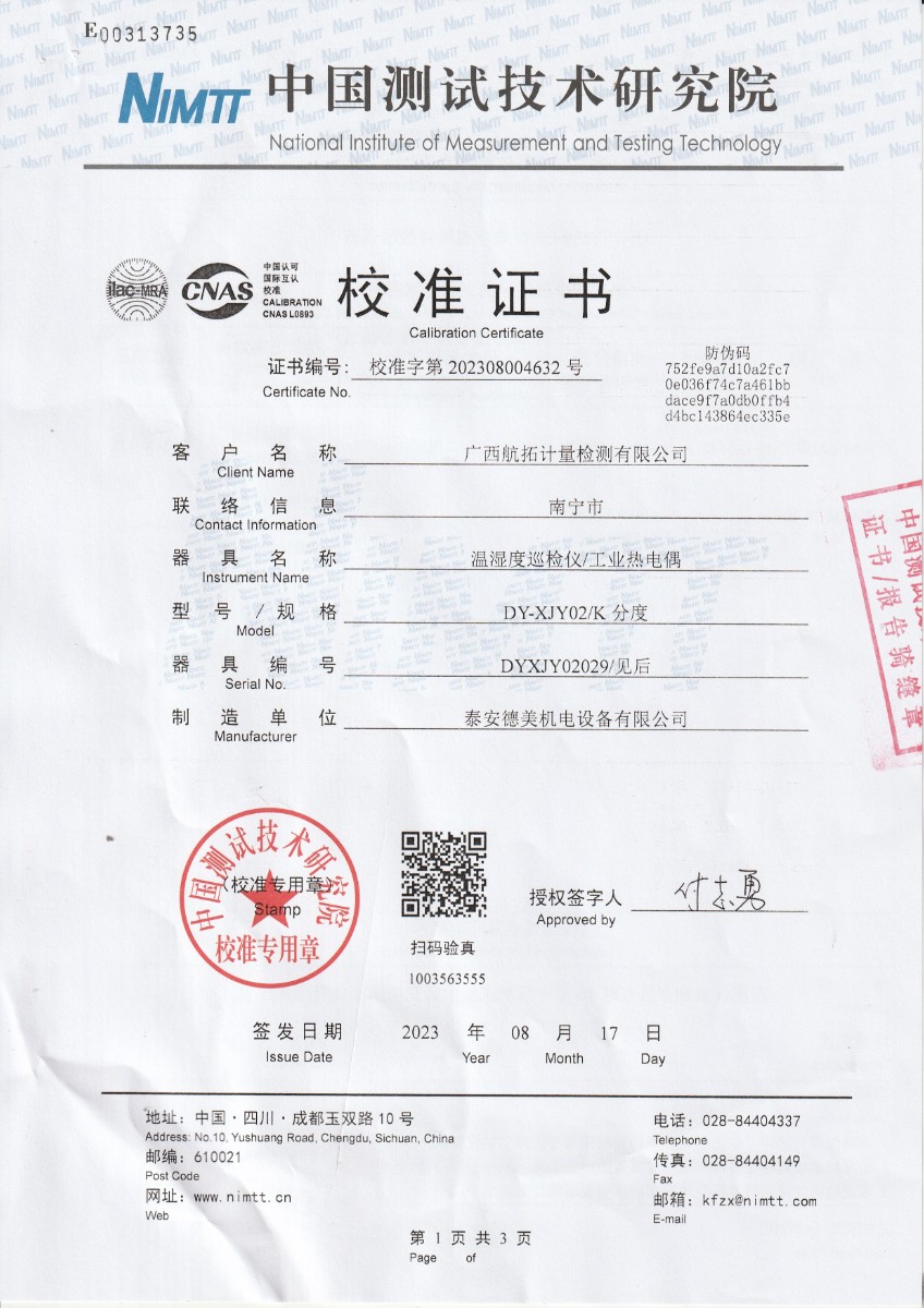 廣西航拓計量檢測有限公司-溫濕度巡檢儀、工業(yè)熱電偶 2023-8-23 本文被閱讀 12960 次