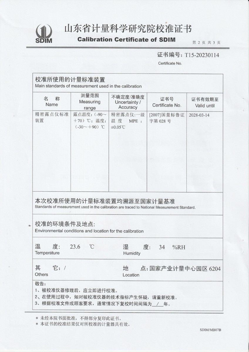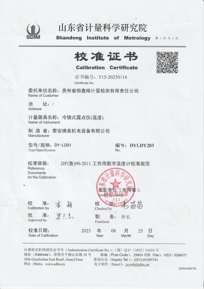 貴州省恒鑫格計量檢測有限責(zé)任公司-冷鏡式露點(diǎn)儀校準(zhǔn)證書 2023-9-4 本文被閱讀 11834 次