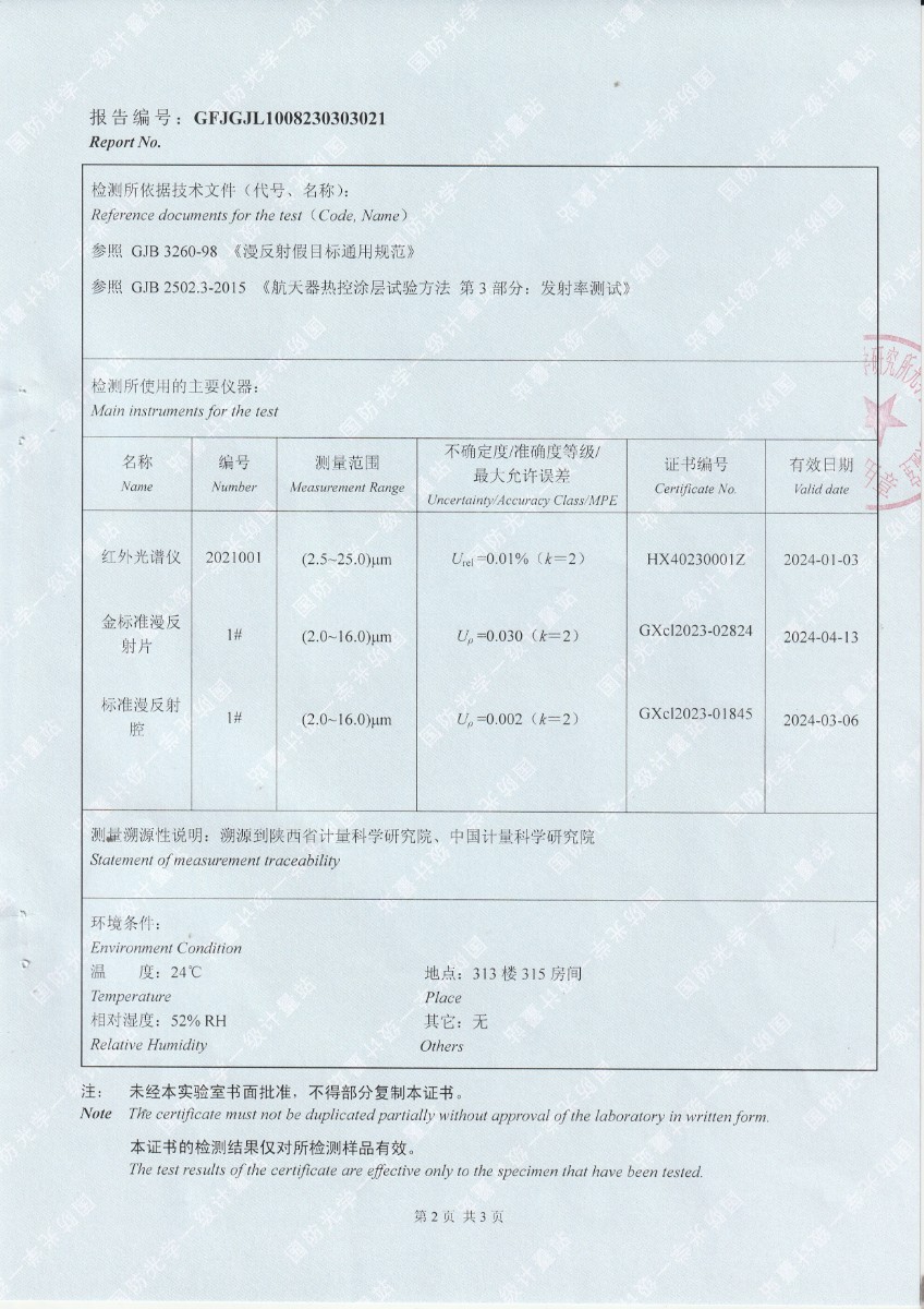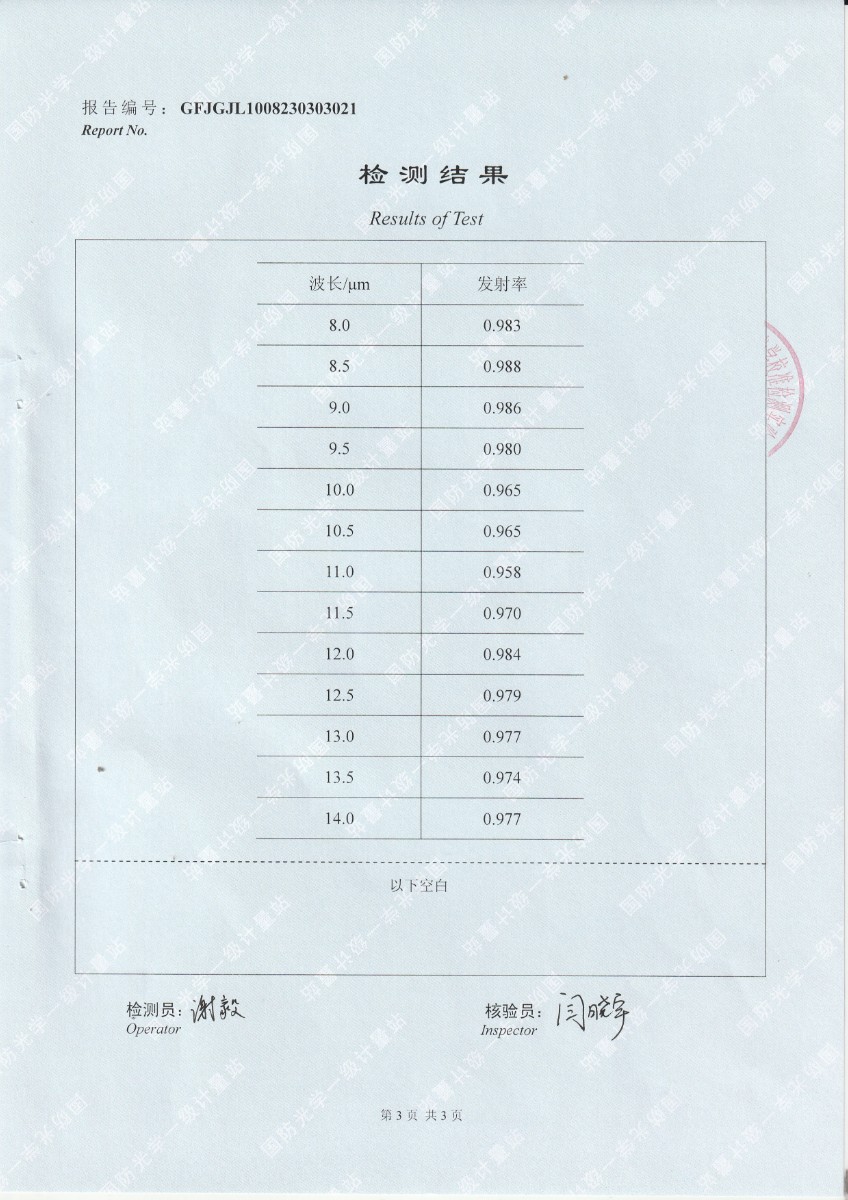北京龍知遠科技發(fā)展有限公司-黑體輻射源涂層樣片DYHT1MF140檢測報告 2023-9-4 本文被閱讀 9777 次