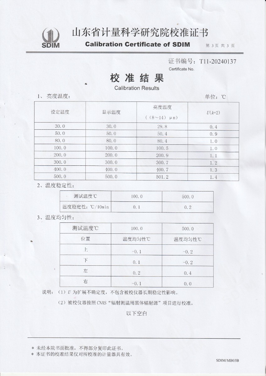 面源黑體爐校準(zhǔn)證書 2024-3-27 本文被閱讀 7081 次