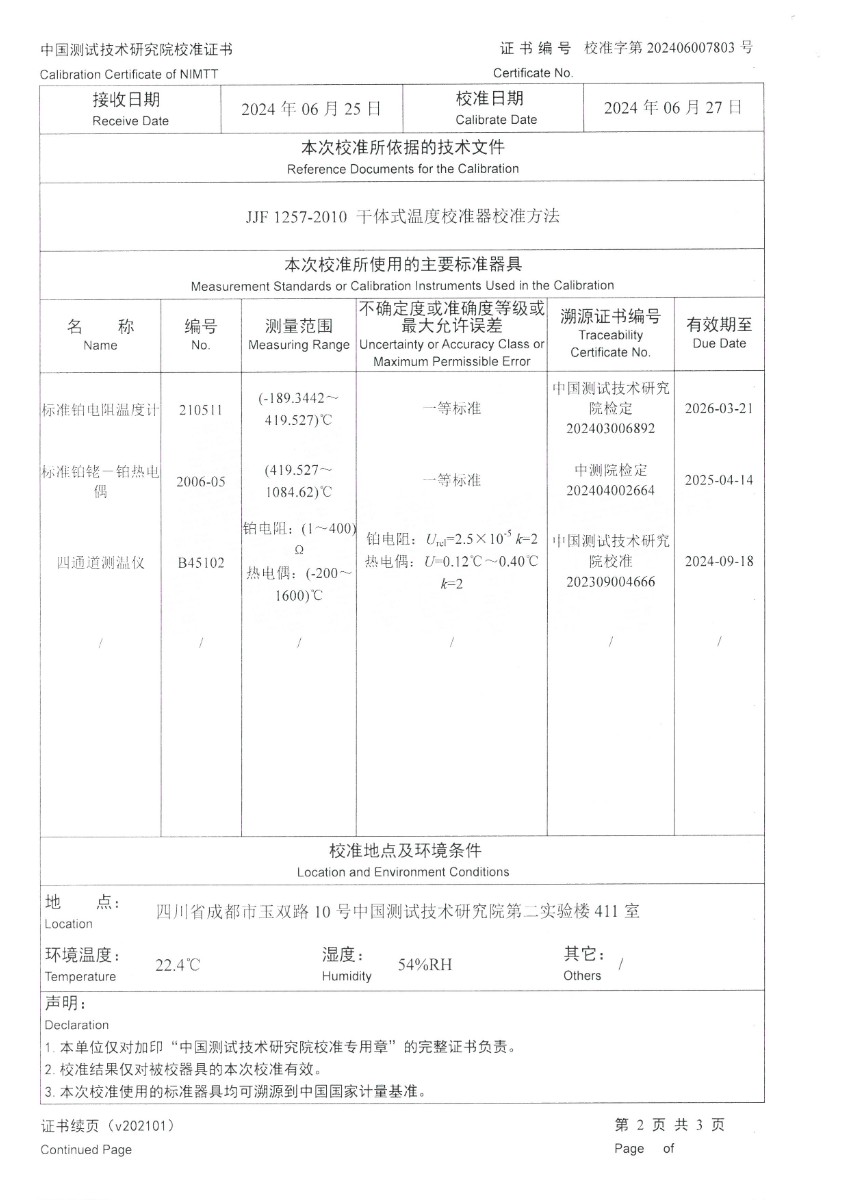 | 上一條:中溫干體爐(50~450℃)校準(zhǔn)證書 | 下一條:DY-HT2M-C高溫面源黑體爐(100mm) |