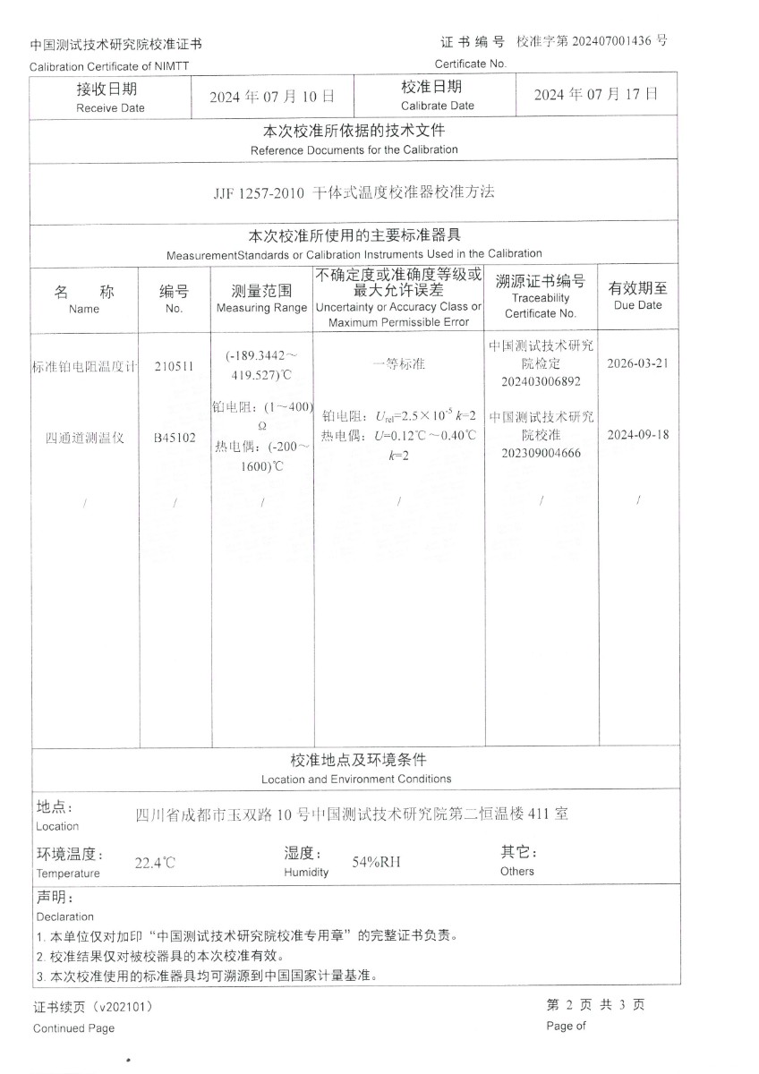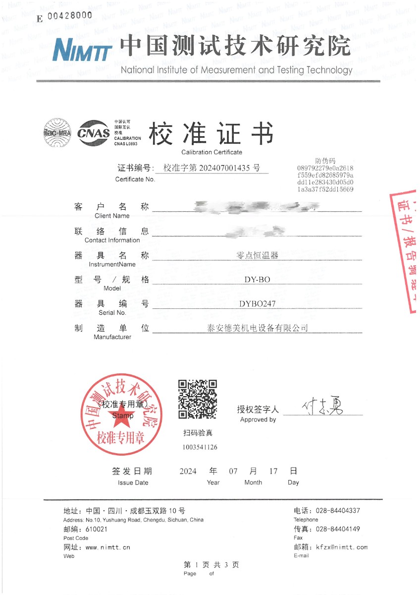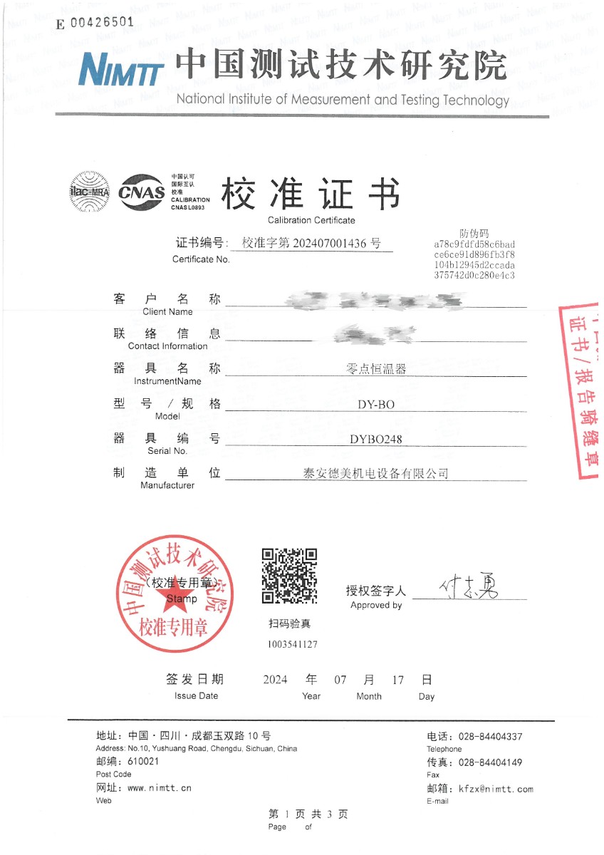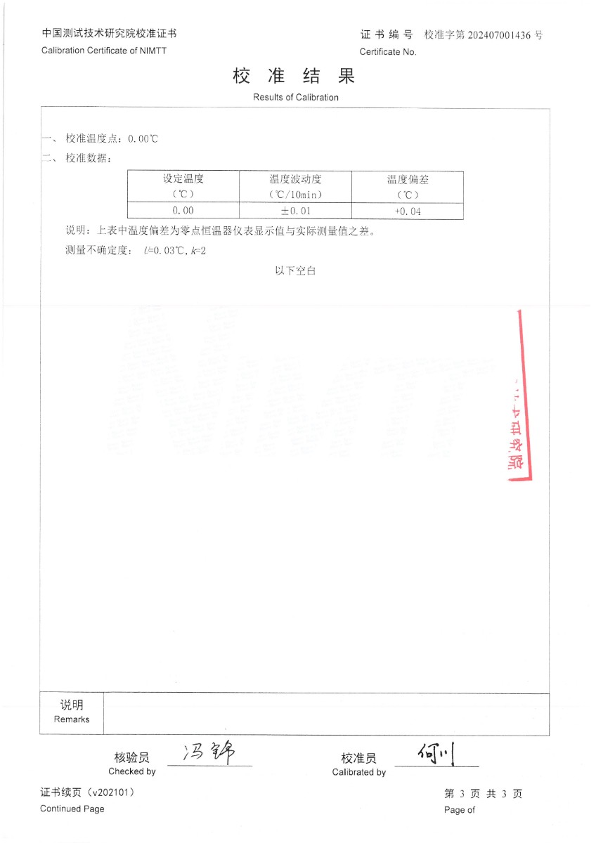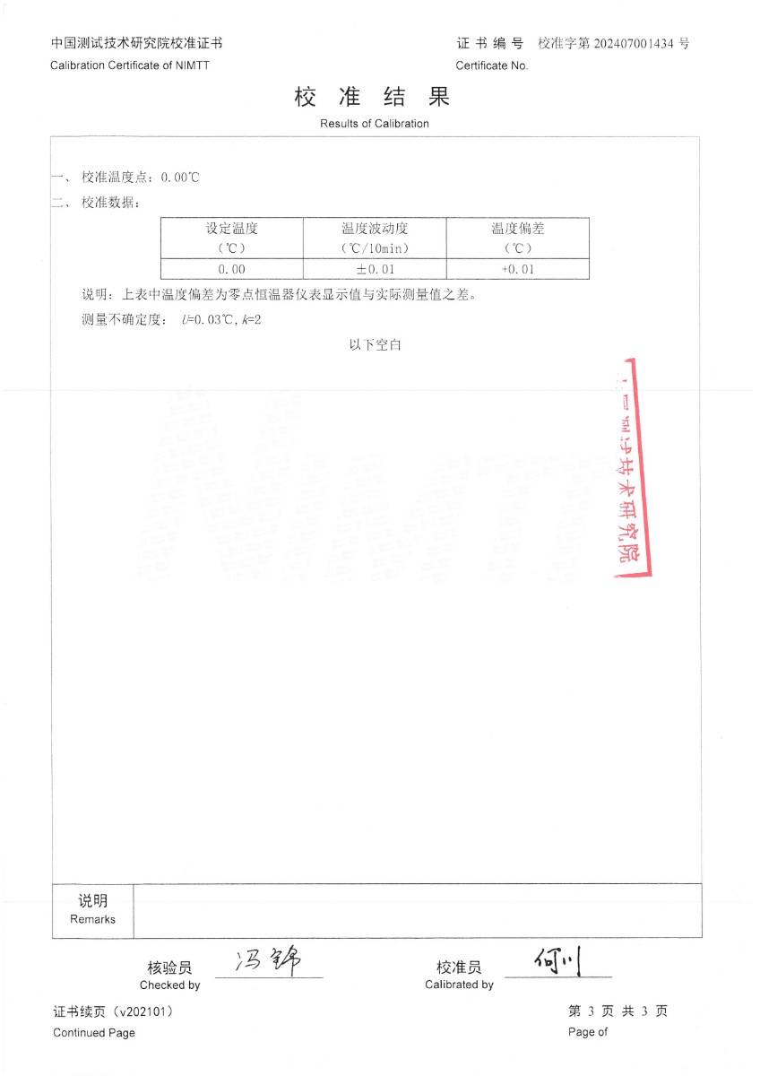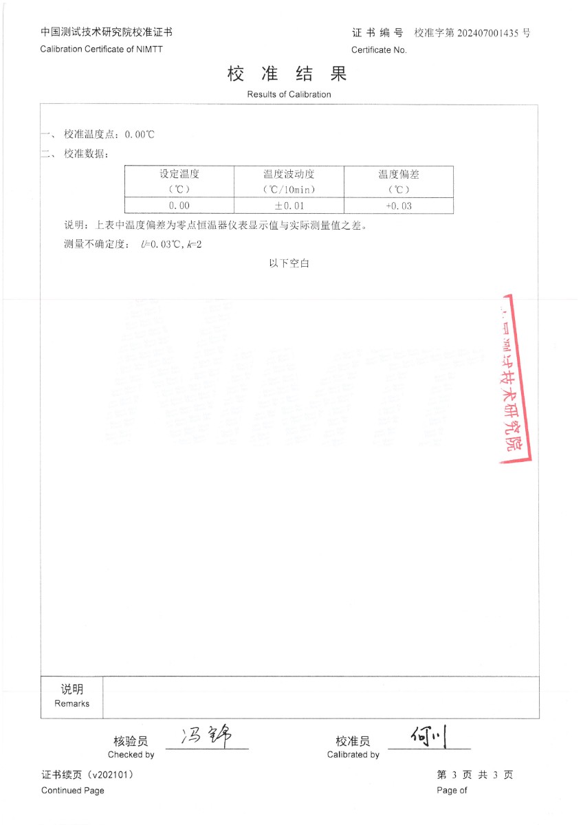 零點恒溫器校準證書 2024-7-19 本文被閱讀 7409 次