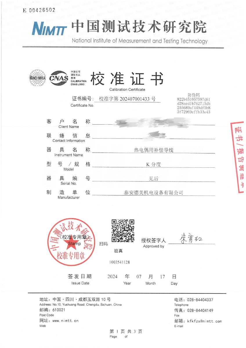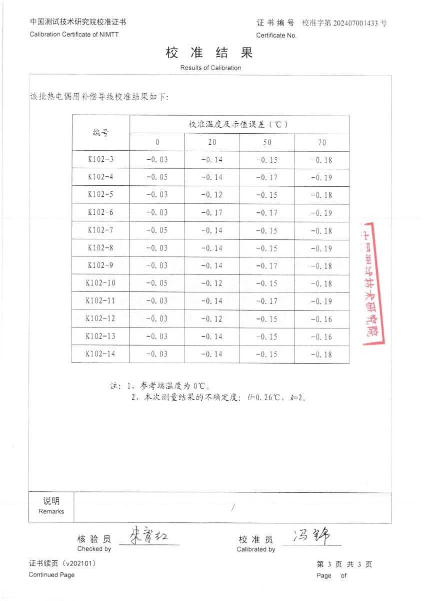 熱電偶用補(bǔ)償導(dǎo)線K分度校準(zhǔn)證書 2024-7-19 本文被閱讀 7532 次