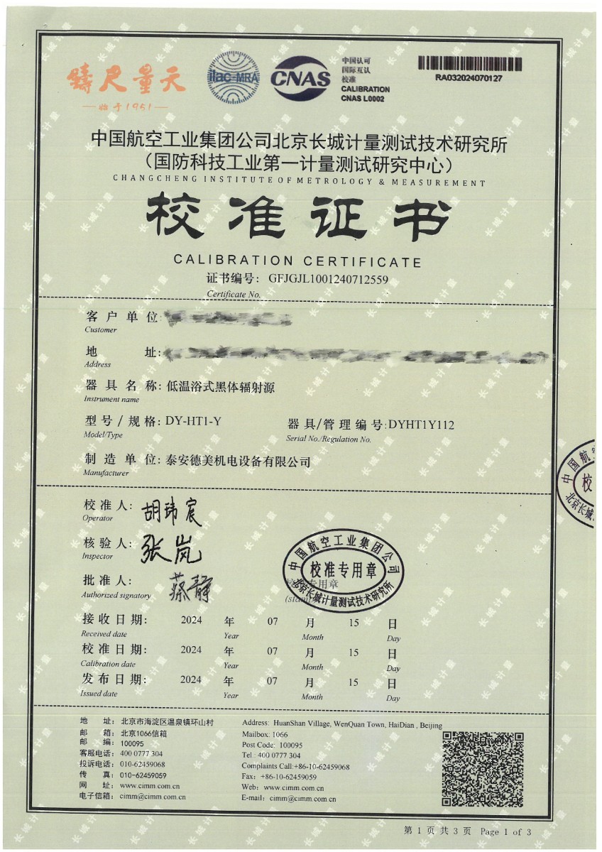 | 上一條:標(biāo)準(zhǔn)水銀溫度計(jì)校準(zhǔn)證書(shū) | 下一條:DY-HT2M-C高溫面源黑體爐(100mm) |
