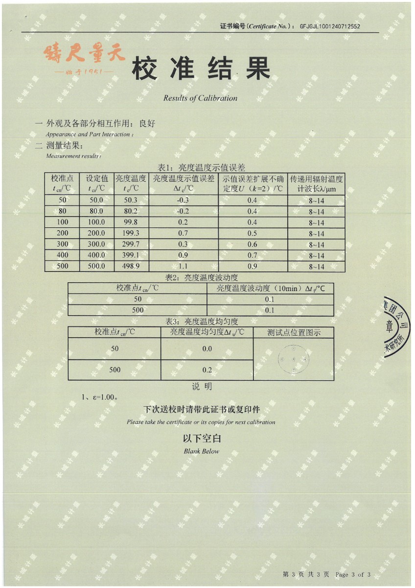 | 上一條:面源黑體爐(室溫+5℃~400℃)校準(zhǔn)證書 | 下一條:DY-HT2M-C高溫面源黑體爐(100mm) |