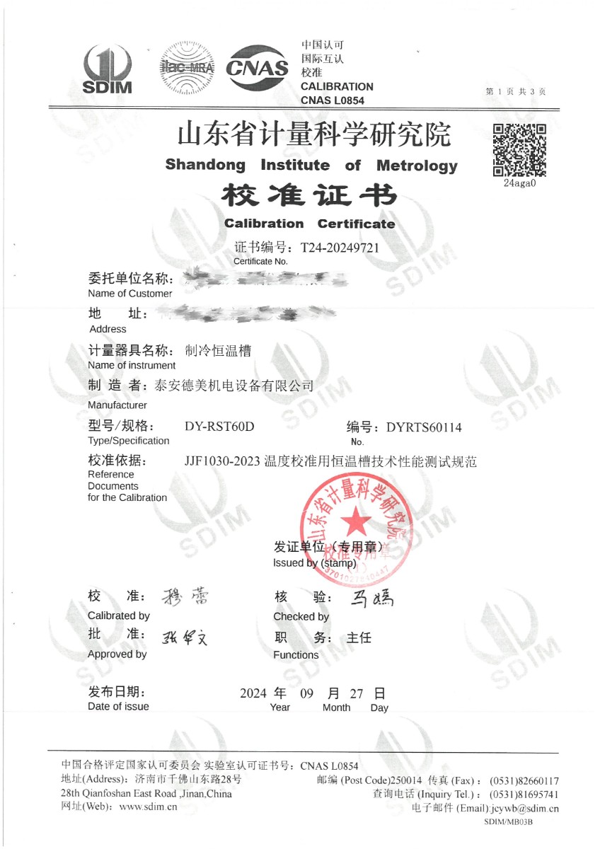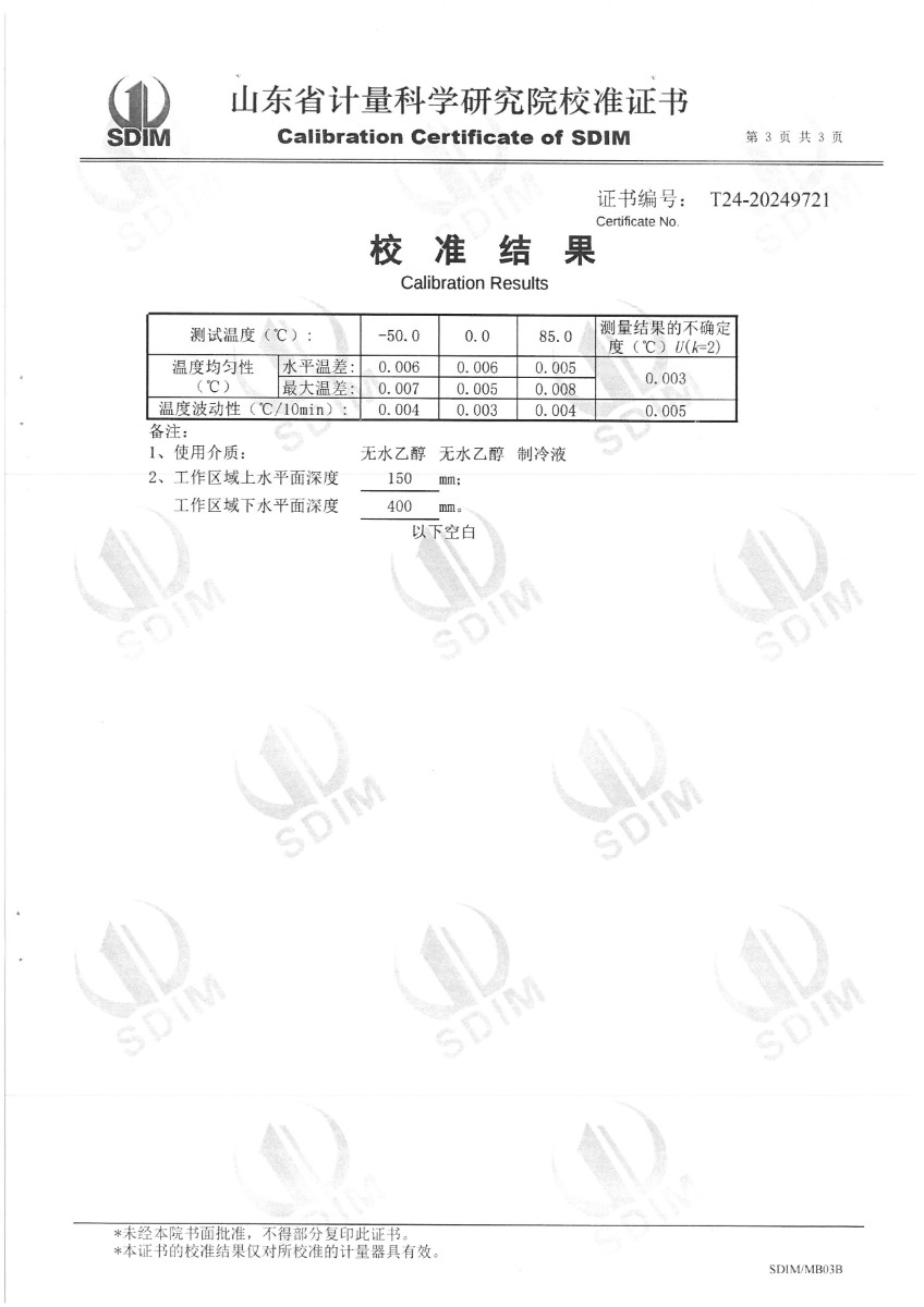 制冷恒溫槽(-60~95℃)校準證書 2024-10-8 本文被閱讀 7276 次