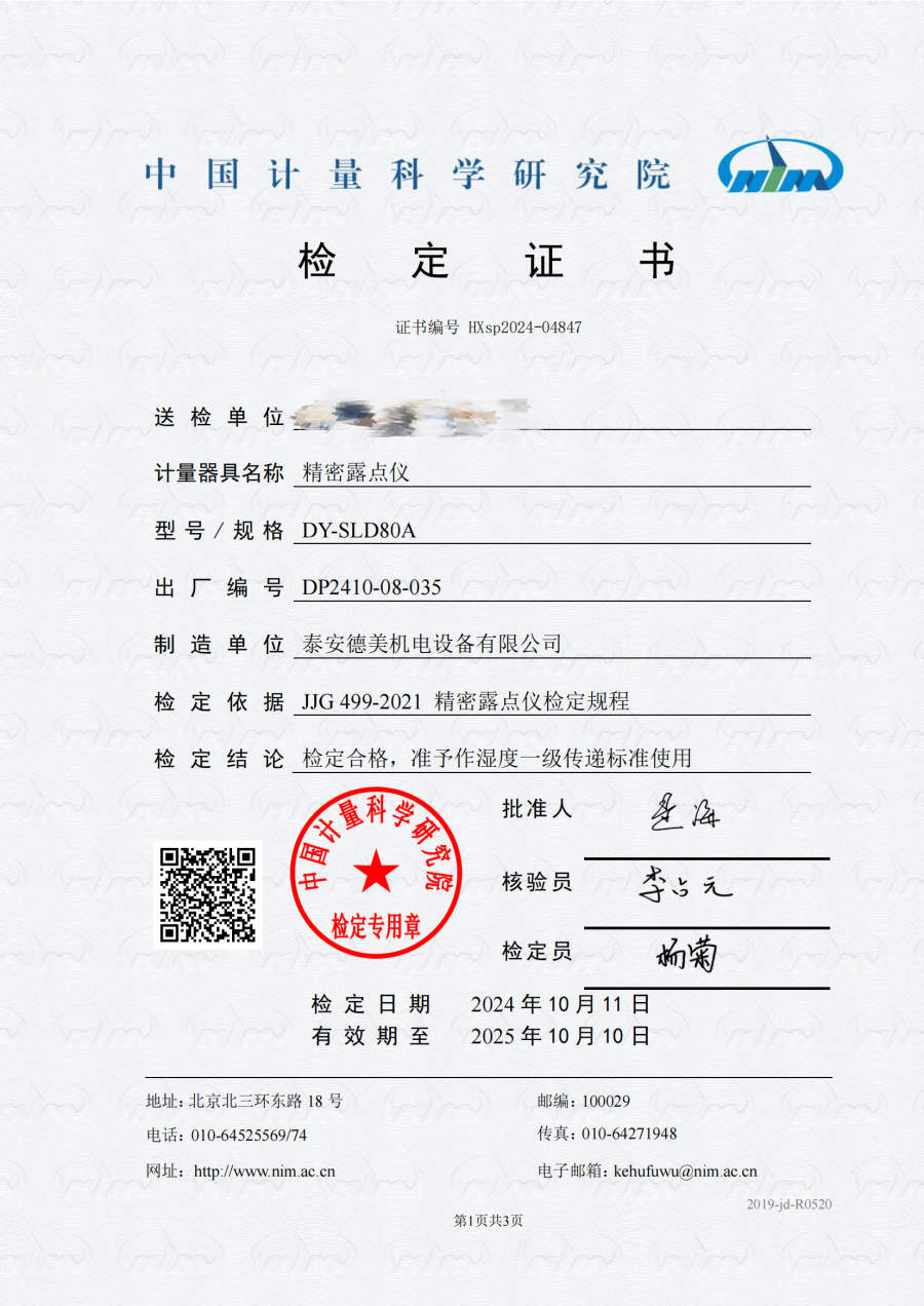 露點儀校檢定證書 2024-10-25 本文被閱讀 7464 次
